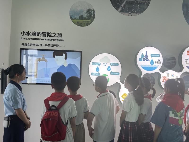 小水滴的冒险之旅 水,是生命的源泉。 每一滴水的宿命,从一场旅途开始…… 队员们在展厅通过一段视频、一张张画册,学习到水的生命之旅,学习到水从哪来(大气、海洋、溪流、土地等),到哪去(畜牧、农耕、住宅、工业),以及城市污水处理后的循环利用。