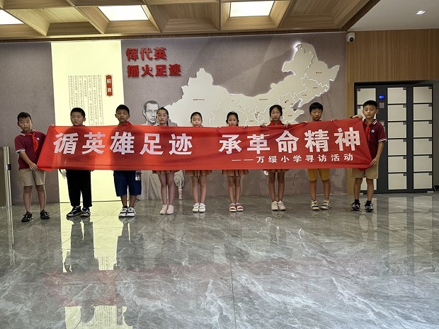 暑期过半,不少队员已然开始渴望迎接新的集体生活。炎炎夏日仍挡不住队员们对暑期研学活动的热情。8月,万绥社区校外辅导站三年级少先队员在老师的带领下进行了第三期的暑期研学之旅——“循英雄足迹 承革命精神”。 第一站:恽代英广场 恽代英纪念广场始建于1998年。广场占地约1000平方米。与广场外川流不息的车流和人来人往的景象相比,这里显得格外宁静、庄严。广场全部用灰白色的花岗岩铺成,象征着革命烈士永垂不朽。恽代英广场为全国爱国主义教育示范基地。 队员们被恽代英广场的氛围感染,他们在恽代英同志的雕像前肃立、敬队礼,以此来表达对革命先辈们的敬意。队员们围在一起听辅导员老师介绍恽代英同志的履历,对恽代英肃然起敬,想要更进一步地了解恽代英的故事。 第二站:代英书院 代英书院坐落于孟河镇文体中心二楼,一走进代英书院,映入眼帘的是一幅中国地图,上面用红色圆点标记出来的地点就是恽代英同志的播火足迹。队员们听着辅导员老师介绍恽代英同志走过的路、吃过的苦纷纷感叹现在幸福生活的来之不易。 穿过代英书院的书架一直往里走,印着恽代英同志很有代表性的几篇短篇日记,文字虽少,但每一篇都表明了恽代英同志的坚强意志、坚定的革命信念。正因为中国共产党有太多太多的恽代英同志,中国的革命才能取得成功。让少先队员们体会到前辈们矢志不渝的革命信念,学习先辈们的革命精神就是我们这次活动的意义。