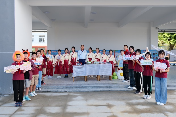 时值孟秋,开学季拉开了帷幕。9月,六百多名和乐少年重返校园,万绥小学以崭新的面貌呈现在大家眼前,青砖白壁,飞檐翘角,一派江南悠悠古韵。 以诗会友 “同窗请留步,敢问阁下是否愿意与我对诗一首。”迎接同学们的飞花小队身着宽袍大袖,漫步校园,举手投足尽显古韵。“众鸟高飞尽——”“孤云独去闲!”“又疑瑶台镜——”“飞在青云端。”对诗者也是气定神闲,对答如流,尽显诗词储备。品中华诗词,寻文化基因,做一名“腹有诗书气自华”的和乐少年。 以词寄意 成语蕴涵了语言之美,寥寥数字,却包罗万象,内涵丰富,寄托了中国人的美好祝愿。“糕”与高同音,寓意“才高八斗”,串串葡萄象征着累累的硕果,开口的坚果祝愿新学期师生笑口常开。队员们言笑晏晏,摸物而入,既是一场别致的仪式,又是一次成语文化的熏陶。 以画传情 走进教室,等待他们的是一墙精美的“壁画”。方寸之间有乾坤,细微之处见真情,辅导员用一幅幅板面新颖,图文并茂的黑板报装点着教室,传递着对孩子的爱。 一场濡染传统文化的开学仪式落下帷幕,孟秋时节又见君,正值少年勤学时。