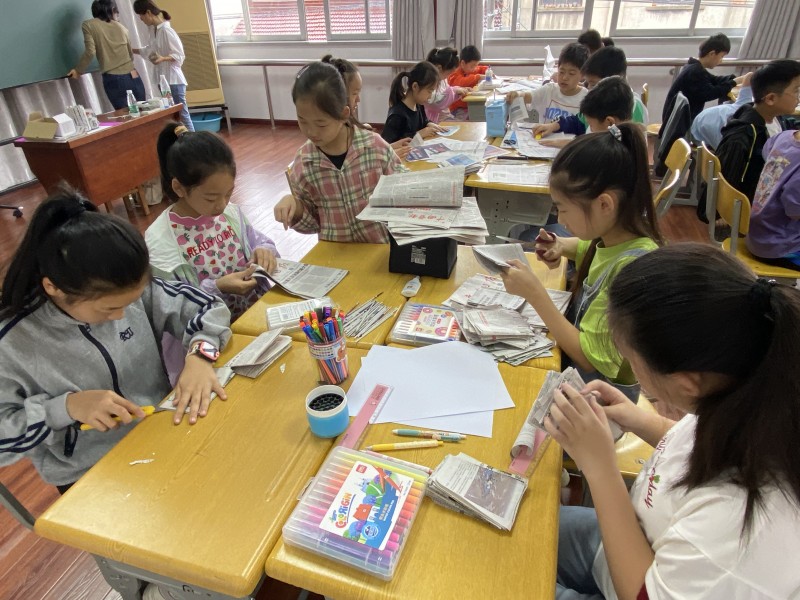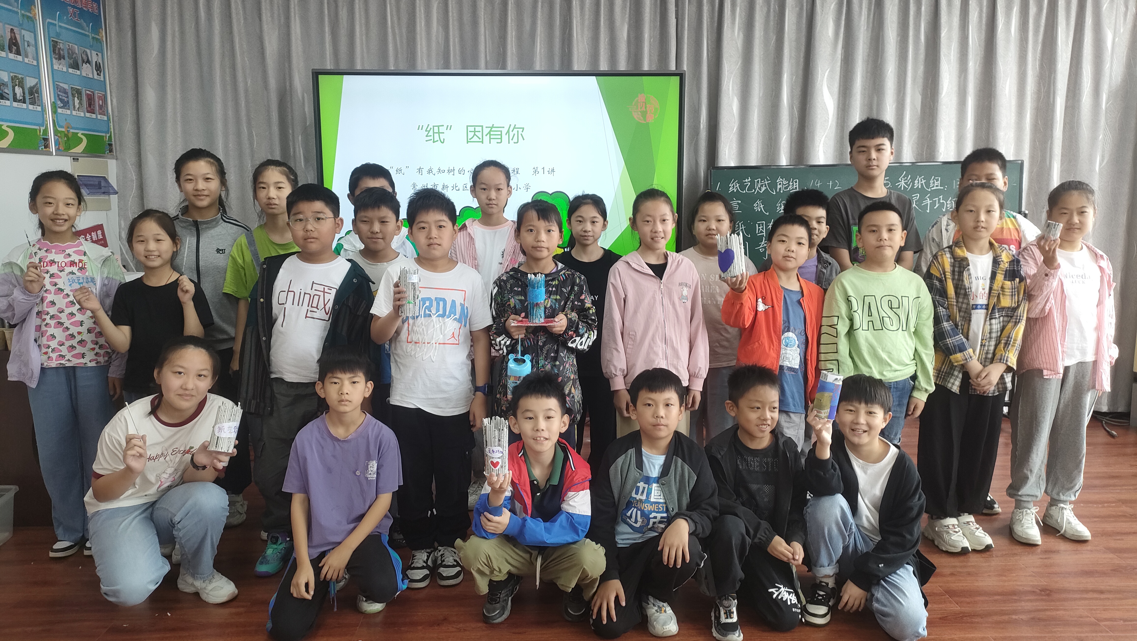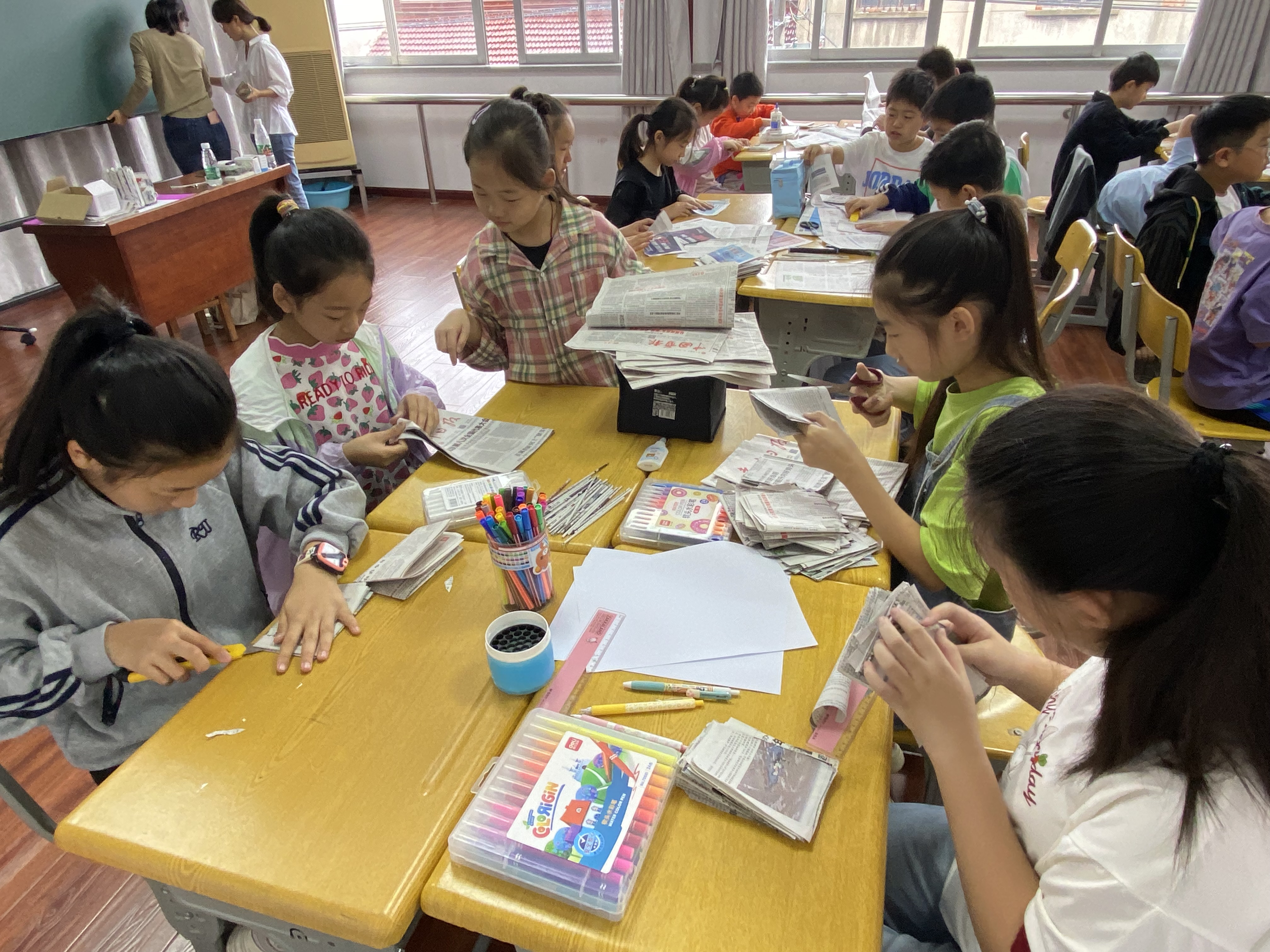 纸,源于自然,生于树木。纸的回收是对树木生命的延续,是对自然绿意的守护。2023年9月,孟河中心小学关工委携手孟城社区校外教育辅导站,邀请常州市“俭以养德”志愿服务工作组的老师们走进课堂,为队员们呈现了一堂精彩纷呈的纸艺赋能活动。 热身环节 刘家慧老师首先向大家做了简单的自我介绍,并和队员们一同进行了充满活力的热身游戏。在“头头拍拍,肩肩拍拍,头拍肩拍,头肩拍拍……”的动感音乐中,孩子们放下拘谨,积极地参与到活动中来。 紧接着,刘老师邀请队员们自主分成各个小组,并确定好本组的组名与组长,纸艺赋能组、宣纸组、“纸”因有你组、创奇组、彩纸组、心灵手巧组就应运而生了。队员们在小组内交流着自己的兴趣、特长,畅想着纸张的一生。 纸艺赋能 接下来就是纸张的变身环节啦。 第一步,裁纸。队员们将报纸依次铺平,沿中线多次对折,借助裁切工具,得到若干等份的长方形纸片。 第二步,卷纸。刘老师向大家展示了事先卷好的纸棒,并提醒队员们要将纸棒卷成相同的长短、粗细,卷好后用点点胶粘好,每组要完成35根。 队员们看了后纷纷跃跃欲试,将长方形纸片铺平后,向前卷曲。看到纸艺赋能组率先完成后,其他小组也不甘示弱,迅速完成了卷纸任务。 刘老师向队员们提问,在卷纸的过程中,是否遇到了什么问题,或者有怎样的发现。 江雨欣表示,最初卷的时候就要卷的很细,而且不能放松,不然就会变粗了。 陶思宇说,放在桌面上会更容易固定住。 刘老师总结道,其实在生活中做任何事都要专心致志,起步就很关键,今天的卷纸是这样,学习上、生活中亦是如此。队员们点头表示赞同。 第三步,粘合。各小组在交流讨论的基础上,确定好本组的纸筒模型。刘老师向大家提供了硬卡纸,只见队员们将卡纸裁切成各种形状,有长方形的、有正方形的……并将点点胶粘贴在卡纸表面处,将事先做好的纸棒依次排列,卷成纸筒。 第四步,彩绘。队员们聚精会神地绘画着自己的创意图画,将其剪贴在纸筒上。 纸艺赋能组:这是彩虹、这是小花,我们想让小花在得到雨水的滋养后,见到明亮的彩虹。 心灵手巧组:我们是心灵手巧组,所以我们画了一个大大的爱心。 创奇组:我们采用了创意绘画的方式,将硬卡纸包裹着纸筒,这样固定的效果会更好。 刘老师说,我们可以通过手工制作,让普普通通的纸张变废为宝,开启它新的生命旅程。 纸的秘密 胡南老师向大家介绍了纸的发展历程。从结绳记字,甲骨传文,再到青铜器与石鼓上刻满文字,沉重的简牍记载着历史,昂贵的绢帛誊写着辉煌。但这些平民百姓接触不到的方式也在隔绝着文化。当造纸术发明并普及时,人类的知识文明得以快速传播,并成功影响了全世界。 然而当今存在着许多浪费纸张的现象,“如果我们全国每人节约一张纸,我们每年就可以少砍伐158万棵树木。”队员们这样说道。 小物堪大用,小爱成大善。一张废纸,很薄、很轻,但当一张张废纸载着爱心被汇集起来时,就变得很“厚”、很“重”。相信队员们在日后的学习生活中,会牢记低碳、环保、节约意识,以“日行一俭,德佑一生”为准则,践行惜纸行动、涵育节俭品德,用实际行动肩负起环保的重任。