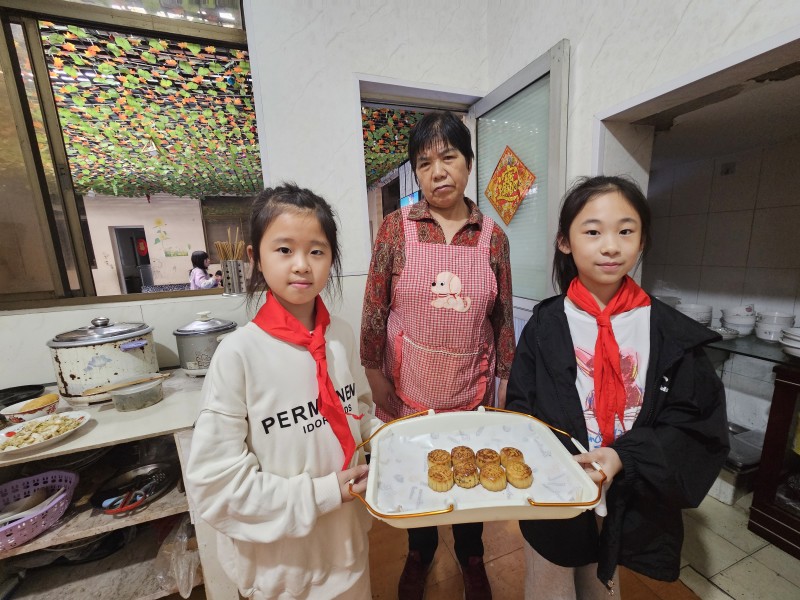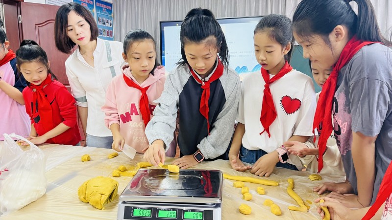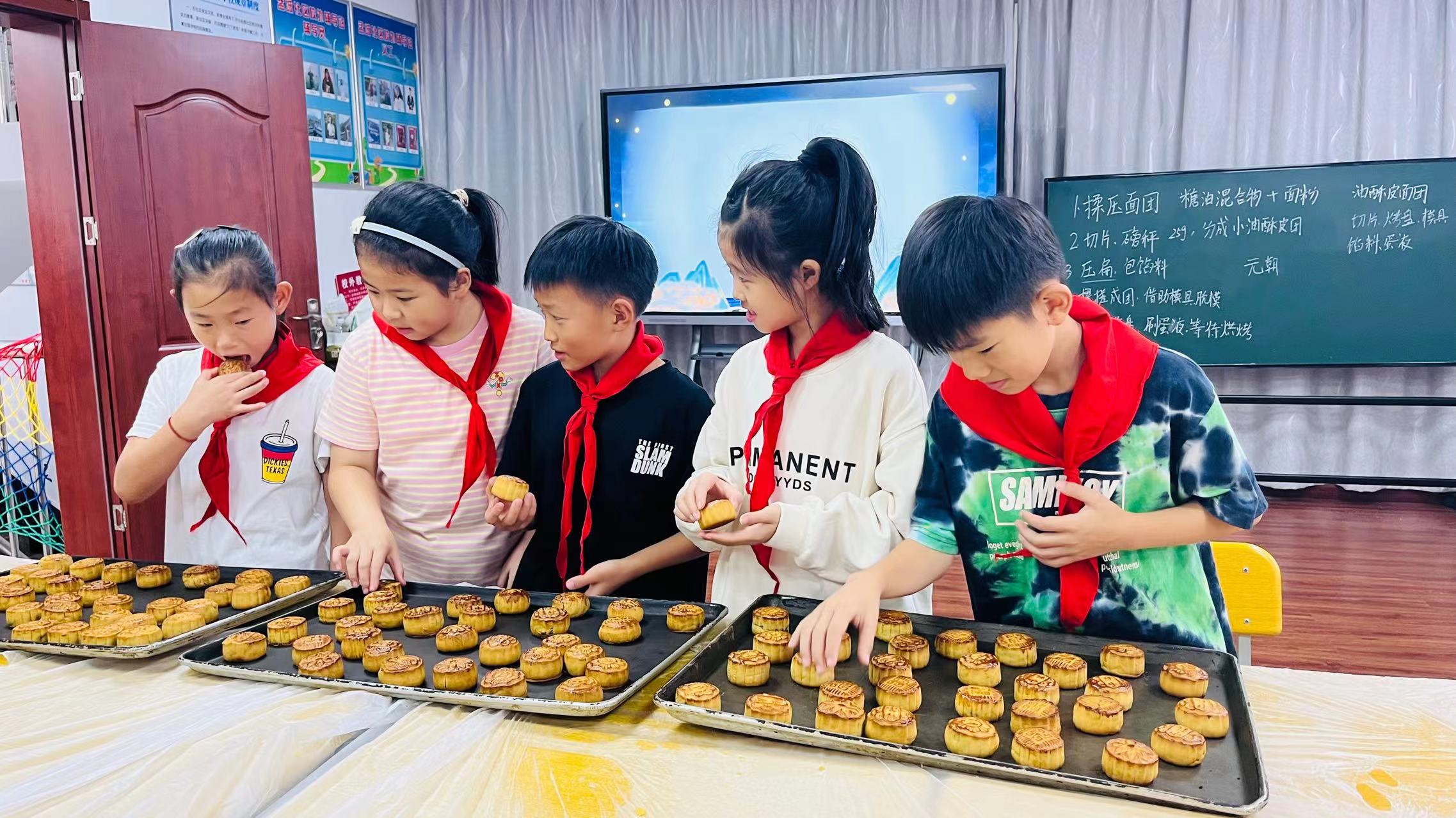 月到中秋分外明,人到中秋情更浓。中秋佳节将至,为营造热烈喜庆、文明和谐的节日氛围,引导队员感悟中华民族的传统节日,体验中秋文化的独特魅力,树立正确的劳动价值观、良好的劳动习惯和品质,2023年9月,孟河中心小学关工委与孟城社区校外教育辅导站联合开展了“手工月饼送温暖”主题教育实践活动。 一、讲解动员 活动开始前,队员们排成整齐的队伍,在老师们的组织下有序就座,洗净双手,铺平桌布。一切准备就绪,队员们满是兴奋,认真聆听德育处邱瑶教导所讲解的中秋节起源及习俗,用心学习着月饼知识。 二、月饼制作 我们邀请了烘焙师朱阿姨前来,为大家耐心细致地讲解、示范月饼的制作流程及注意事项。朱阿姨将事先配置好的糖油混合物倒入面粉中,揉成淡黄色面团。队员们兴趣盎然、跃跃欲试,等待片刻后,终于热火朝天地动手忙活起来。 紧接着队员们双手合拢,轻轻揉搓,将其变为一个个圆滚滚的小球。之后,将小球放置在手心中,按压为一个小饼。把馅料放在面皮的正中央,拢起,一团一揉,重复,直到馅料完全包裹在面皮中,并用手将表面的凹凸抹平。 队员们将包好馅料的面团放在自己的面前,骄傲地展示着自己的劳动成果,等待老师们按下相机快门,定格这幸福的一刻。 随后,队员们将面团有序排列,等待压花。每个人都小心翼翼地将自己的月饼护在手心,眼神中无一不带着对月饼制成的期盼。 朱阿姨先为大家做示范,她把面粉撒进模具,又将队员们的面团用力按进模具里,反复按压,将面团的表面在容器中压平,随双手一翻,轻扣两下,面团便稳稳地落下,一个月饼就做好了。 队员们见此立即扬起笑脸,对月饼的样式赞不绝口。之后,纷纷动手操作,将一个个小巧玲珑的月饼胚放入刻有字印的圆形模具中,用手向下摁压,直至表面光滑平整,紧接将模具倒扣在盘上,握住把手,用力推出月饼。 队员们将一排排月饼整齐地放在烤盘里,制出的月饼印刻着中式传统花纹,格外美丽。同一块面皮,同一块馅料,放在同一个盘中,让队员们的心紧紧相拥,紧紧相连。 朱阿姨说,刷过蛋液后,月饼表皮会变得更加色泽诱人、香甜酥脆。队员们尝试过后表示,刷蛋液也很讲究呢,要顺着一个方向刷,还要确保表面每一处都刷上。 在烤盘进箱的过程中,美味也在时间里酝酿。辅导员雷佳敏老师为大家讲述撰写活动感悟的几个角度,鼓励队员们积极投稿,争取发表。 月饼新鲜出炉,瞬间香飘四溢。队员们迫不及待地品尝起来。虽然是第一次动手做月饼,但出品都有模有样的,当看到一个个小巧精致的月饼从自己手中诞生时,大家都异常兴奋和满足,幸福的笑容洋溢在每一名队员的脸上。 月饼,是中秋节必不可少的食物,而亲手制作的月饼,更是一段难忘的回忆。队员代表与社区工作人员一起,将月饼送到爷爷奶奶们的手中,询问他们的身体情况,并送去温暖的节日祝福。 本次活动,在一片欢声笑语中圆满结束。一块月饼一份情,圆圆的月饼象征着人圆、家圆、祖国圆。这场手工月饼送温暖的活动,不仅有助于队员了解中秋节的文化渊源,而且使他们真正体会到劳动中操作的快乐和趣味,增进了队员们对亲朋好友团聚的情感认知、对祖国和家乡的真挚热爱。