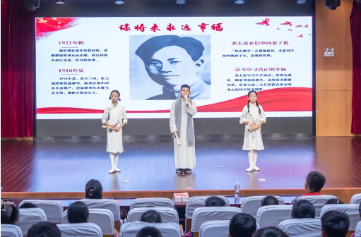 活动现场,常州三杰纪念馆“红领带”宣教队为队员们讲述了瞿秋白、张太雷、恽代英等老一辈革命先烈的“红色家风”故事,同时通过观看“常州三杰”的相关视频,让大家更直观、深入地了解先烈们的革命事迹,使红色革命精神深入人心、代代相传。 二、红色故事会 在学好红色故事的同时,飞龙实验小学积极鼓励队员们讲好红色故事,紧扣新时代少先队工作的要求,精心培养了一批红领巾讲解员,帮助队员们从小树立责任感、使命感和荣誉感,用实际行动赓续红色血脉。