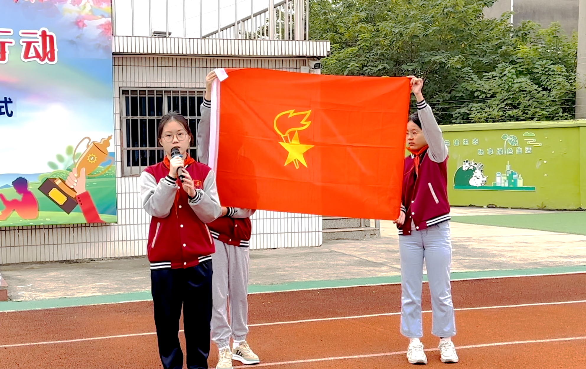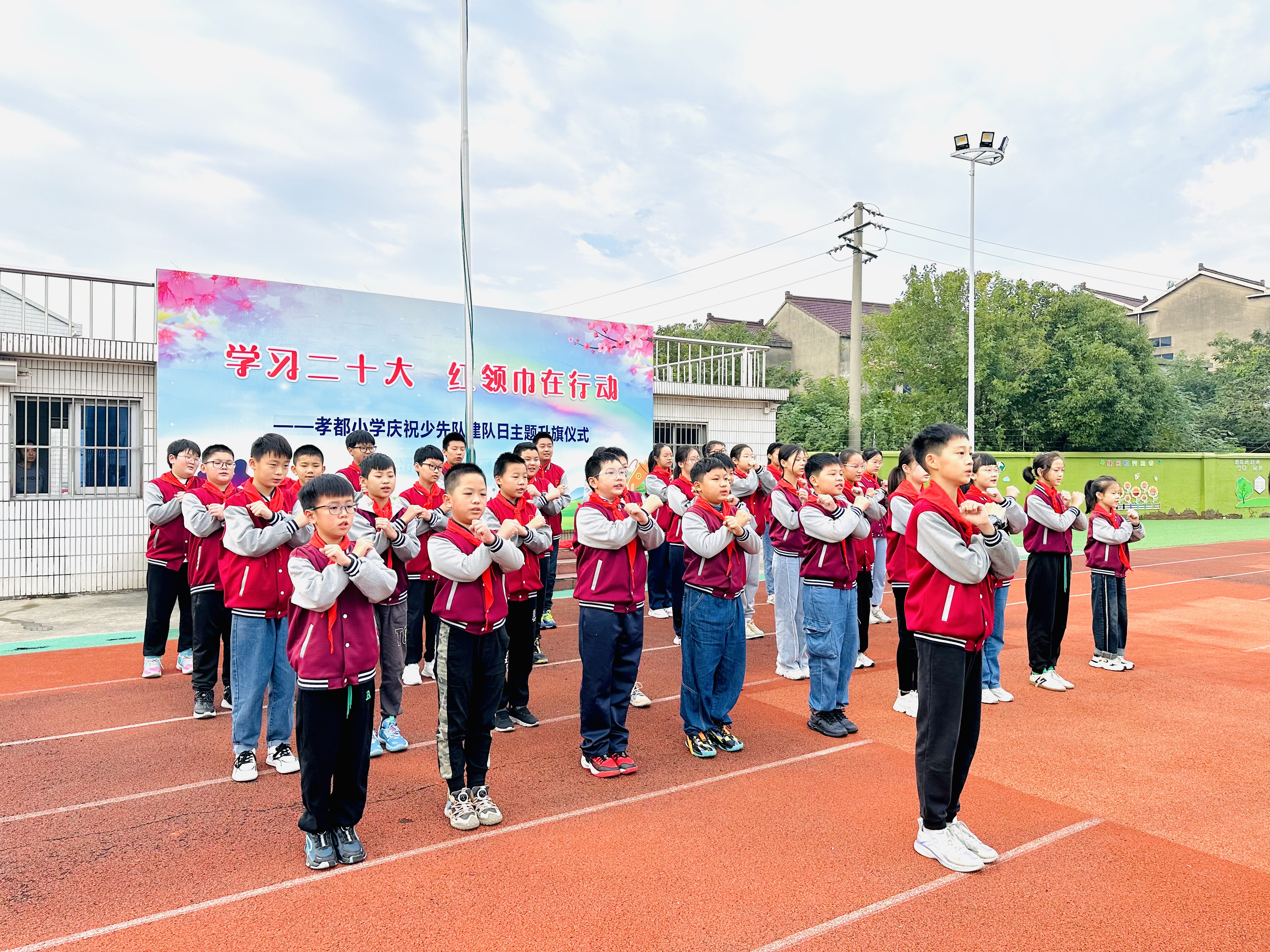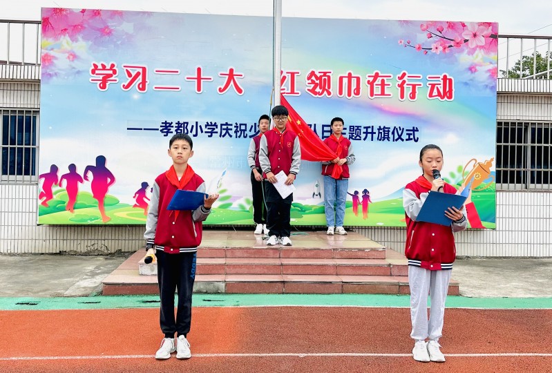 10月13日,少先队将迎来自己的节日——中国少年先锋队建队日。为贯彻党的二十大精神,落实立德树人根本任务,加强少先队员爱党爱国教育,提升他们的光荣感和使命感,在第74个建队日即将到来之际,孝都小学开展“争做新时代好队员”系列活动,于2023年10月9日举行“学习党的二十大 红领巾在行动”主题升旗仪式。本次升旗仪式由六(2)中队承办。 庄严肃穆升国旗 六(2)中队的常文轩向全体队员介绍事迹,作为中队长,他热爱阅读,写出的文章经常得到老师的夸赞,他兴趣广泛,德智体美劳全面发展,是队员们学习的榜样。 庄严的国歌声中,鲜艳的五星红旗冉冉升起,全体队员行队礼,深怀对祖国的热爱和敬意。 重温知识展风采 六(2)中队的队员们带领全体队员重温队知识,第一小队向队员们介绍了少先队大队旗的含义,第二小队介绍了红领巾的含义和正确的佩戴方式,第三小队对少先队队礼的规范进行了含义的解说和行礼的要义。 “我们是共产主义接班人……”全体队员唱响《中国少年先锋队队歌》用歌声献礼建队日,用铿锵的声音立志:热爱祖国,理想远大;勤奋学习,追求上进;品德优良,团结友爱;体魄强健,活泼开朗。牢记党的要求,争当新时代的四好少年。 争做新时代好队员 唐金凤主任做国旗下讲话,她向队员们阐述了在中国历史发展的各个阶段,少先队员们都用先锋队的角色发挥自己的力量,为祖国的发展贡献后备力量。她勉励各位队员要从生活中的每一件小事做好,充分发挥少先队员的先锋作用,为胸前的一抹红增光。 值周反馈促进步 陈宇峰主任就校园中安全活动、文明课间和文明用餐等方面进行了总结,红领巾值岗队员就上两周值岗情况进行了反馈。 未来一周,我们还将开展丰富、有意义的活动,切实引导队员继承和弘扬少先队的光荣传统,让队员们争做新时代好队员!
