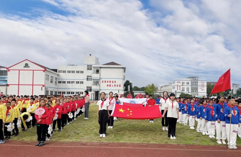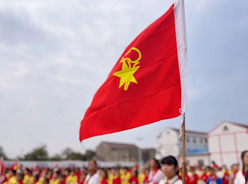 雄壮有力的《少先队出旗曲》奏响,拉开了入队礼的序幕。大队旗手和护旗手迈着铿锵有力的步伐,出旗。全体队员共同唱响《中国少年先锋队队歌》,用嘹亮的歌声诉说我们的斗志,表达自己对党、对祖国、对少先队组织深深的依恋和祝福。首先,少先队大队辅导员胡老师宣读新队员名单,并对新入队的孩子表达了殷切的祝福和未来的期盼。红领巾是光荣的象征,红领巾有着光荣的传统,伴随着《红领巾飘起来》的悠扬旋律,六年级的优秀队员们为二年级新队员佩戴红领巾。当鲜艳的红领巾飘扬在胸前,新队员们脸上洋溢着激动与自豪。在鲜艳的队旗下,新队员们高举右拳,在大队辅导员胡老师的带领下,庄严宣誓!一句句铿锵有力的誓言,响彻整个会场;一张张稚嫩的脸庞,洋溢着庄严而激动的神情。接着,六年级少先队员祁欣怡代表全体老队员对新队员们表示衷心的祝愿和热烈的欢迎。二年级新队员代表滕梓萱用稚嫩而坚定的声音表达了对老师们的感激,作为名少先队员的喜悦与自豪,并表示要严格要求自己,向身边的榜样学习,努力成为一个善良、热情、正直、诚实的人,成为祖国优秀的接班人。然后,在大队辅导员胡老师的带领下,全体少先队员在队旗下光荣呼号:时刻准备着!最后,党支部谢书记向新队员表示了祝贺,表达了对新队员们的关爱,希望每位队员都能够爱护和佩戴好红领巾。同时也希望各位队员们立志向、爱组织、练本领,努力成长为能够担当民族复兴大任的时代新人。“红领巾心向党”少先队入队仪式在退旗曲中圆满结束。 星星火炬,照我前行!庄严而隆重的入队仪式,激发了全体队员的荣誉感、自豪感和使命感。同时,也激励着每位少先队员发奋图强,长大为祖国现代化建设贡献自己的量!祝愿每一位少先队员都能勇往直前,踏浪前行!