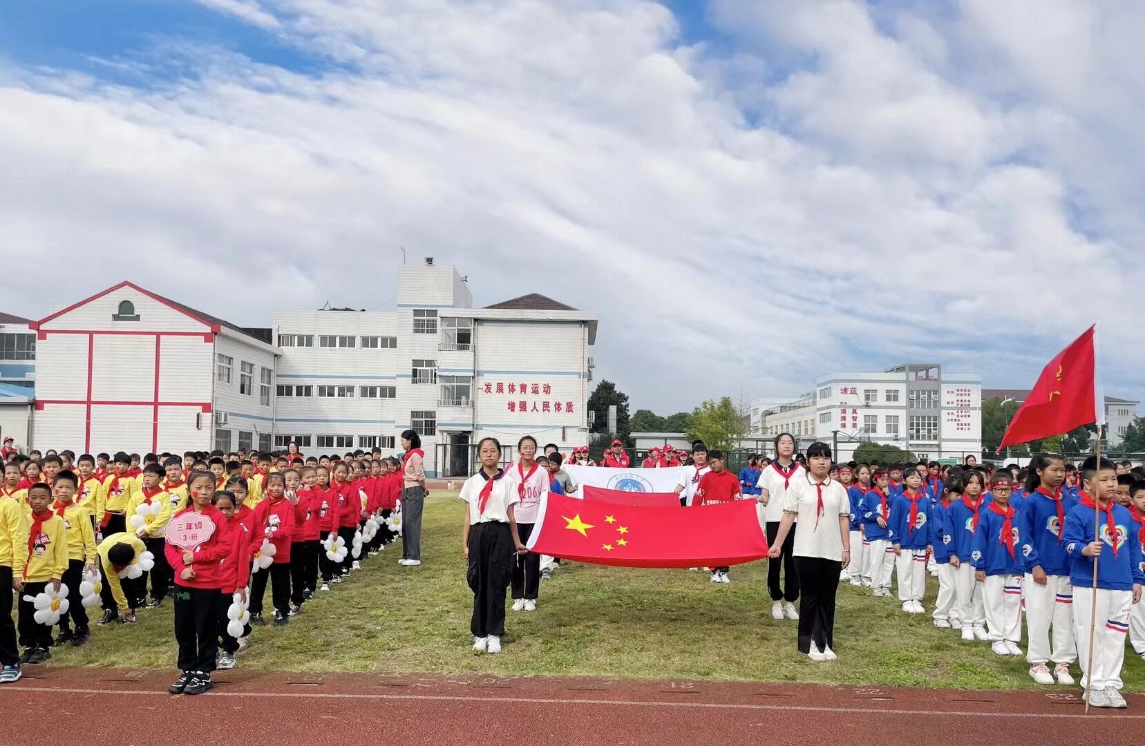 10月13日是少先队建队日,为了隆重庆祝中国少年先锋队建队74周年,引导队员们继承和弘扬少先队的光荣传统,增强少先队员的光荣感和自豪感,更好地提高少先队员的归属感,我校开展了以“红领巾心向党,体魄强健更阳光”为主题的建队日系列活动。 一、红领巾心向党——入队礼