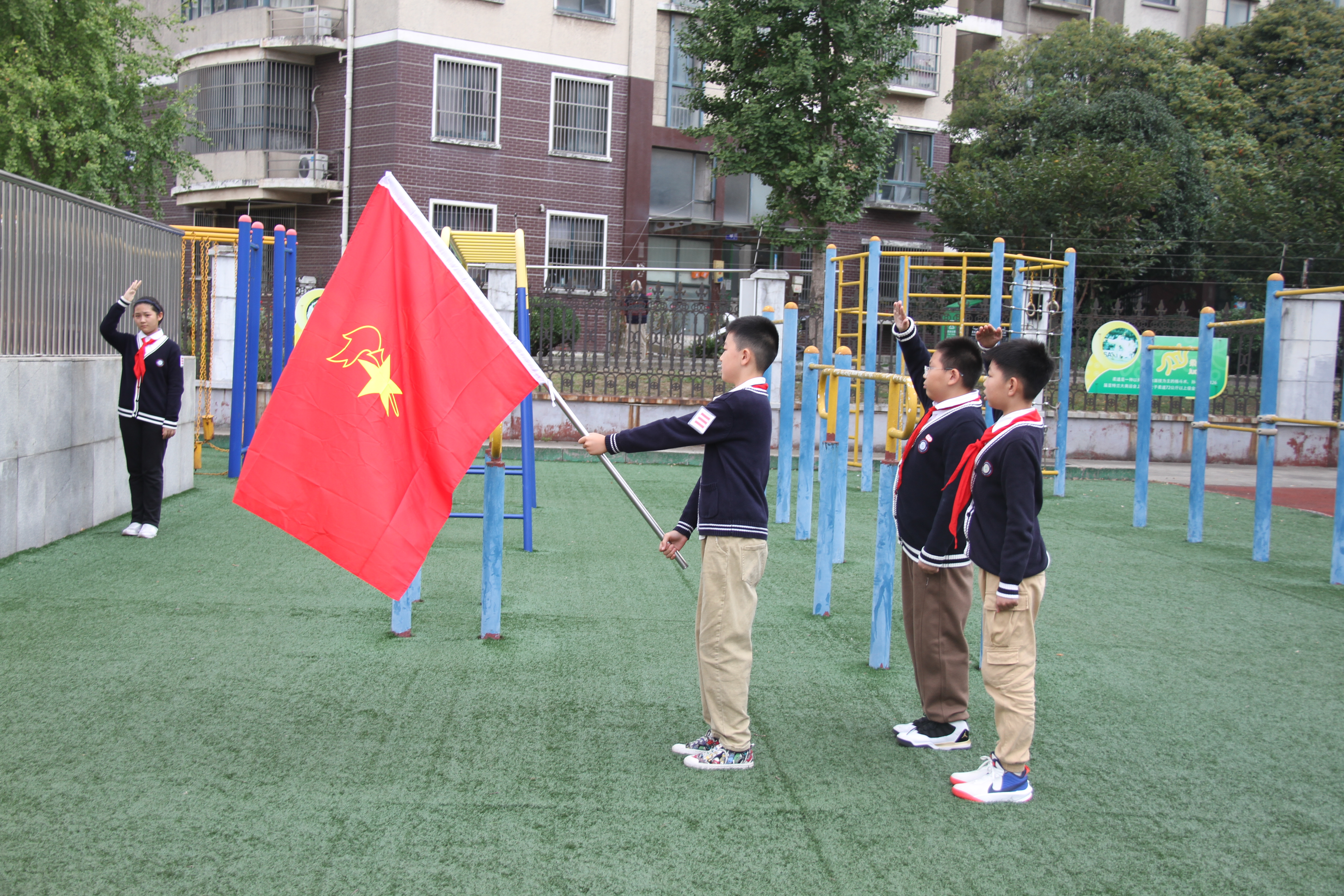出旗·队歌嘹亮 伴随着《出旗曲》激昂的旋律,大队旗手手执鲜艳的队旗,护旗手迈着铿锵有力的步伐,入队仪式正式拉开了序幕。全体少先队员注视着鲜艳的队旗,郑重向队旗敬礼。随后,全体少先队员齐唱了《中国少年先锋队队歌》。那嘹亮的歌声是每个少先队员坚定的信念,传递出少先队员热爱党、热爱祖国、热爱人民的情感。