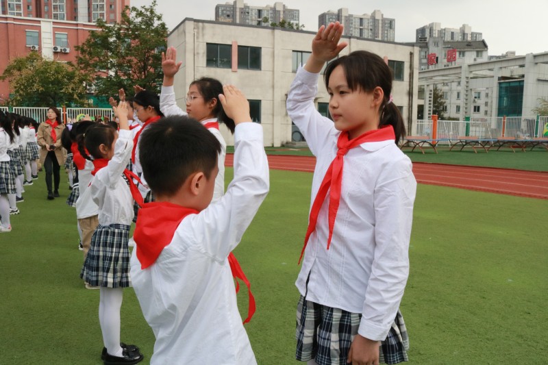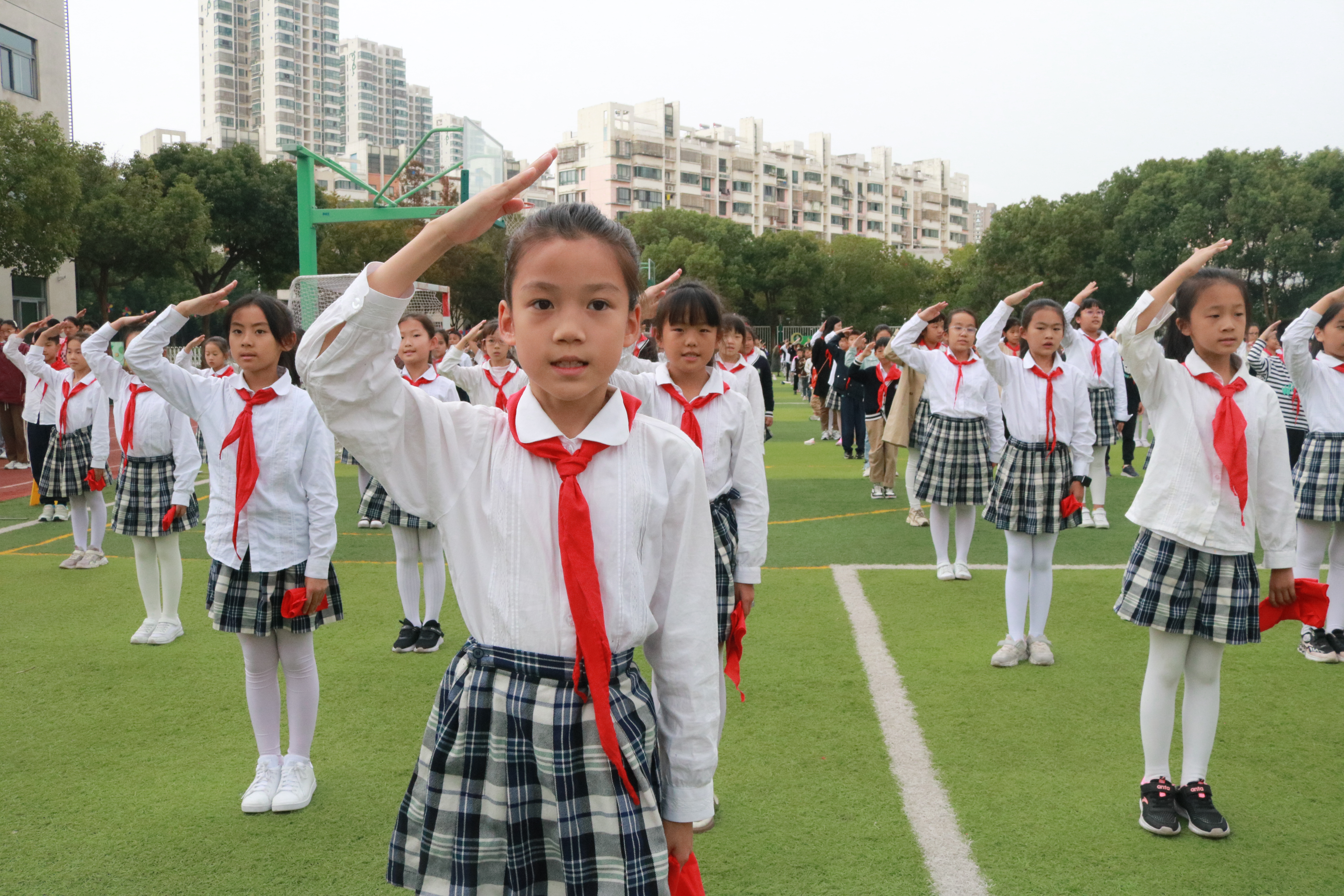为全面学习宣传贯彻党的二十大精神和团十九大精神,深入学习贯彻落实习近平总书记关于少年儿童和少先队工作的重要论述,激发少先队员的光荣感、责任感和使命感,2023年10月13日,在中国少年先锋队建队74周年纪念日当天,常州市新北区百草园小学举行了“红领巾心向党 争做新时代好队员”2022级第二批新队员入队仪式。