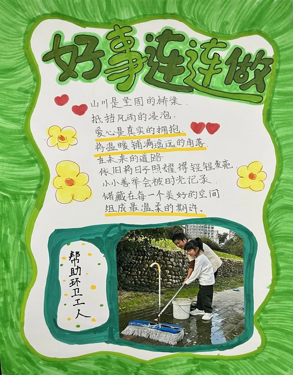 火红的队旗高高飘扬,星星火炬闪耀金光;我们的号角铿锵响亮,召唤伙伴响彻四方。在第74个少先队建队日到来之际,飞龙实验小学启动“喜迎建队日 争做四个自信好队员”主题活动! 一年级组:好事连连促成长 入队誓词中说到了要热爱人民。为有困难的人提供帮助,为集体做出贡献,向社会传递正能量,就是为人民做好事,也是热爱人民的表现。一年级小飞侠从自己开始,从身边小事情做起,从一点一滴做起,力所能及地为人民做好事。不以善小而不为,心有大爱,将来才能成长为祖国合格的建设者和可靠的接班人。