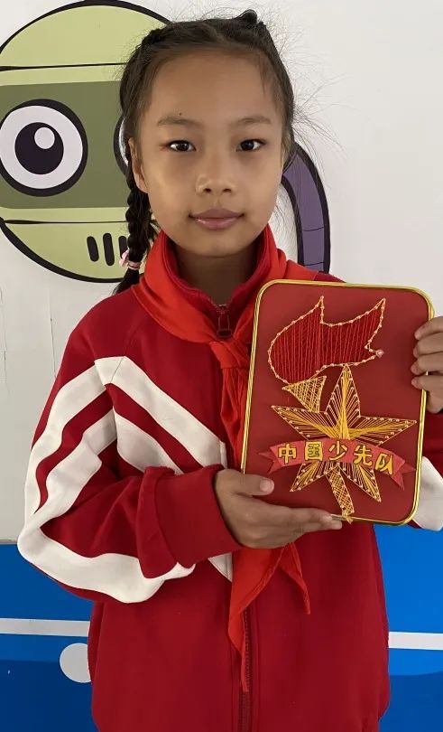 二年级组:队徽闪闪耀四方 中国少年先锋队队徽是少先队组织的徽章标志。它由五角星加火炬和写有“中国少先队”的红色绶带组成。二年级小飞侠动手绘制队徽,队徽闪闪耀四方。