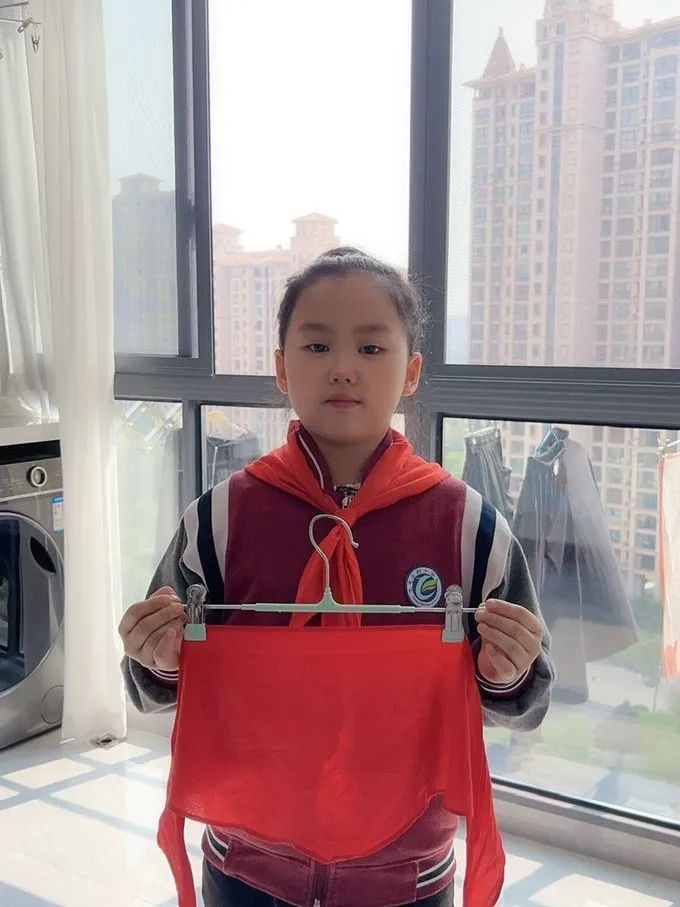 三年级组:领巾飘扬立童志 红领巾是国旗的一角,是革命先烈用鲜血染成的,它是少先队员的标志。佩戴它、爱护它、为它增添新荣誉,是每个少先队员的使命与责任。爱劳动、讲卫生是每个少先队员必须具备的品质。三年级小飞侠利用周末,清洗红领巾,让领巾更鲜红、更飘扬。