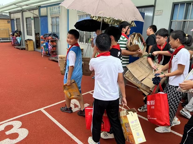 2023年10月25日,新北区万绥小学如火如荼地开展了一学期一度的“幸福小树”家校联系本公益活动。 今年活动与常州市“俭以养德”活动合并,从“惜纸”入手,开展废旧纸张和书籍集中捐献,在全校营造“勤俭节约始于心、珍惜资源践于行”的浓厚氛围。 收集废纸张和旧书籍活动持续了一周,虽然天空下着雨,但队员们仍然捧着在家收集好的6斤废纸,迈着轻快的脚步进入校园。在周五早晨大家笑容满面,各中队井然有序地排队将废纸送到指定位置,协力完成称废纸、捐废纸活动。 活动过程出现了一幕幕暖心的画面:刚入学的一年级小队员们不甘示弱,在辅导员的带领下亲自动手将废纸送到指定位置,不嫌重、不喊累。中高年级的大队员们帮助低年级的小队员们抬废纸,力量满满,爱心满满。还有队员在送完废纸后主动将路上掉落的废纸一一拾起,堪称环保小先锋,为全校少先队员做出了榜样。 通过此次公益活动,队员们的责任感和积极性让大家深受感染和鼓舞,从日常生活的点滴做起,从小培养队员勤俭节约精神,不仅教育一个孩子,还能带动一个家庭,进而影响整个社会,有助于弘扬勤俭节约美德。