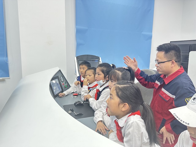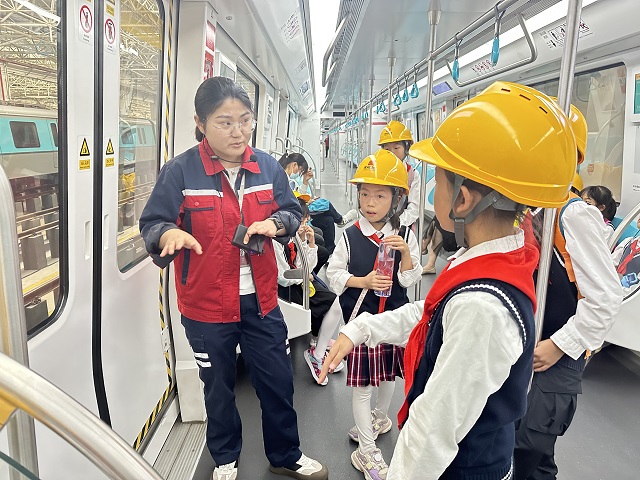 2023年10月29日,恰逢常州地铁5号线正式开工,春江中心小学三年级的少先队员们也怀着激动的心情,在辅导员老师的带领下,自主购票乘坐地铁,来到了常州地铁丁堰车辆段。在地铁工作人员的带领下队员们来到了丁堰车辆段列车的运用库,映入眼帘的是一辆辆排列整齐的“蓝精灵”,原来这里是地铁列车休息的地方,工作人员会在这里对每辆车进行细致得检查。队员们随着工作人员登上“蓝精灵”,了解了地铁车厢里的秘密,也了解了安全乘坐地铁的知识。不远处智能巡检机器人在车底来回巡查,引起了队员们的注意。在工作人员的介绍下,队员们了解到这是常州地铁自主研发的智能巡检机器人“铁宝”,它按照设定程序对车辆两侧和车底进行实时采集和故障分析。在工作人员的指导下,队员们还亲自操控了一番。队员们不禁感叹,我们常州科技的力量,立志要向科研人员学习,努力学好科学文化知识,做新时代的好队员。