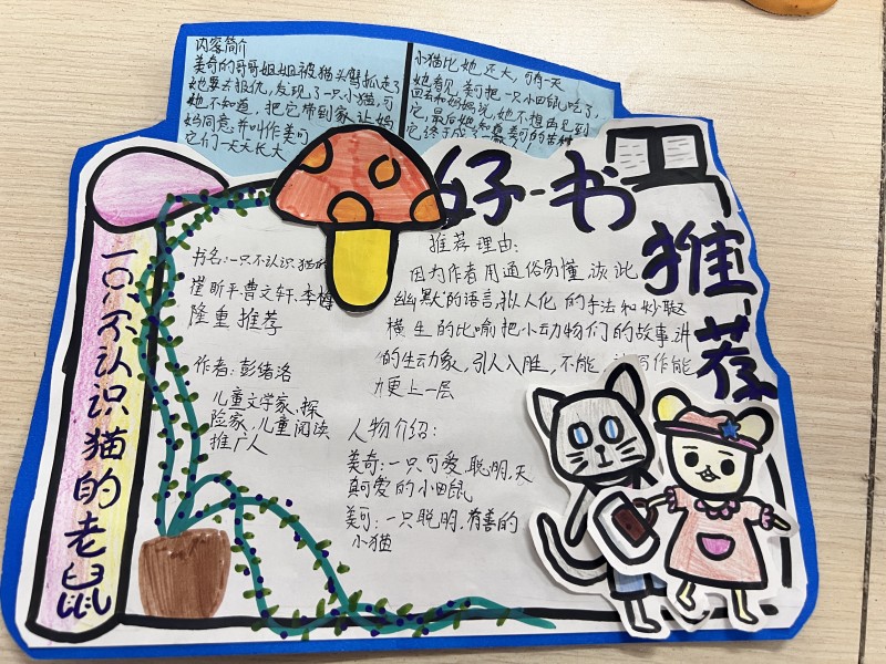 笔尖绘书香 为进一步调动少先队员阅读的热情,培养队员良好的阅读习惯,努力营造“爱读书、读好书、善读书”的学习氛围,五年级举办了“推荐一本书”活动,用这种独特的方式记录队员们阅读时的点滴快乐。他们让文字与图画交相辉映,设计了一张张图文并茂的阅读小报。从主题选择到版面设计,从书写内容到色彩搭配无不体现着队员们的用心。