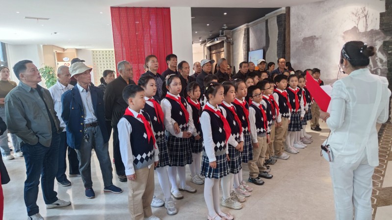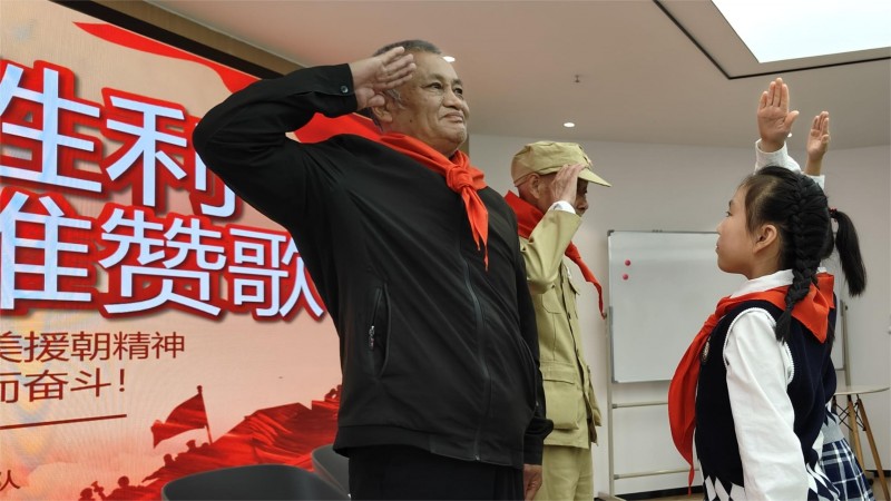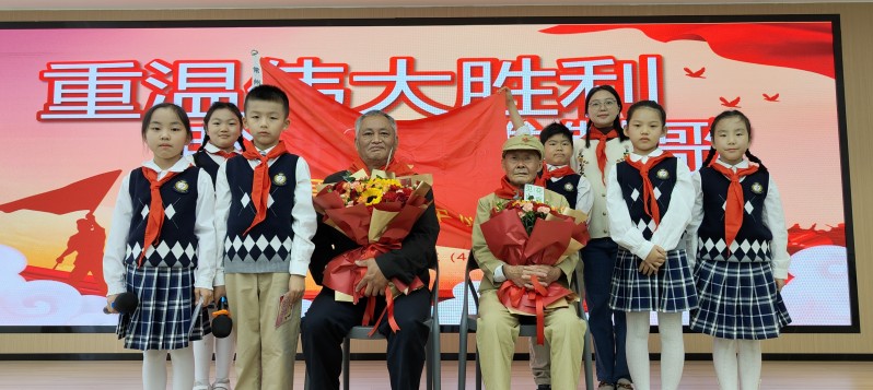 活动最后,少先队员代表为两位老兵代表佩戴鲜艳的红领巾,献上鲜花,共同向“最可爱的人”们致敬!向那场伟大的胜利致敬!