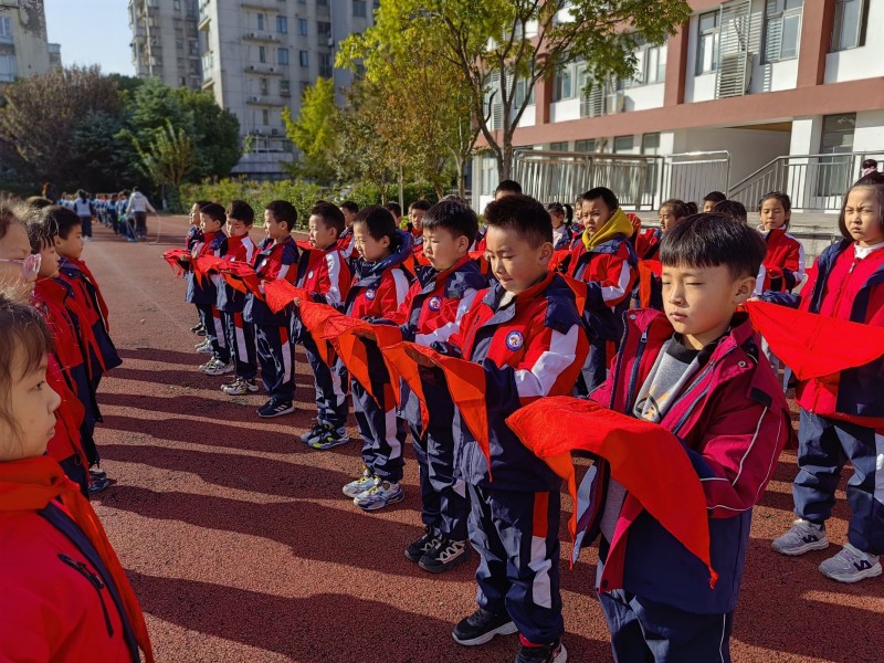 少年有梦领巾飞扬 ——薛家实验小学2022级第二批入队仪式 火红的队旗,迎风飘扬,鲜艳的红领巾,系满理想。11月17日,薛家实验小学在奥园校区操场和花开西庄红领巾馆举行了2022级第二批新队员入队仪式。 新队员们在中队辅导员的带领下,共同参观了红领巾主题馆。寻着红领巾的印记,在心间播种一个红色的梦。 队旗飘飘歌声嘹亮 新队员们精神抖擞,集结在星星火炬旗帜下;庄严的注目礼,是我们对组织的向往;嘹亮的队歌,在薛小校园回荡。 宣读名单见证成长 大队辅导员陆秋敏老师宣读新队员名单,新队员笑容满面,挺起胸膛,梦想开始起航。 新火相传领巾飘扬 老队员和辅导员老师们给新队员们戴上了鲜艳的红领巾。从今天起,我们有了一个新名字——少先队员。稚嫩的小手举过头顶,庄严地献上自己的第一个队礼。这庄严的时刻,铭记在每一位队员的心间。 深情寄语殷殷期盼 大队辅导员陆秋敏老师向新队员表示祝贺,表达了对新队员的关爱与期许。希望他们能够珍惜这份荣誉和责任,勤奋学习、不断进取,成长为一名优秀的少先队员。 队员发言敬礼成长 二2中队新队员代表周宇凡和二19中队新队员代表潘依依用稚嫩而坚定的声音表达对老师们的感激和成为一名少先队员的喜悦与自豪。 集体宣誓牢记使命 鲜艳的队旗下,新队员们整齐划一地高举右拳,在辅导员的的带领下,庄严宣誓。一张张幸福的脸庞在红领巾的映衬下显得更加娇艳、更加灿烂! 呼号响亮坚定理想 在大队辅导员陆老师的带领下,新队员紧握拳头,庄严呼号,“时刻准备着”,声音坚定而又响亮。 队员合作收获喜悦 最后,队员们走进玉米地、红薯地,体验农趣。队员们在大自然中增长知识,感受秋天的季节特征,萌发对大自然的热爱,体验劳动的快乐。