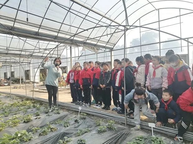 笙绿生态园位于常州新北区春江街道石庄里村,主要从事蔬菜、瓜果、食用菌、粮油作物、花木、中药材的种植及销售。 队员们在专业解说员的带领下走进生态园。他们在田间地头认识农作工具,在草莓棚里学习除虫小妙招,在芋头地旁了解如何从微小的河塘开始治理,从而响应“长江大保护”……队员们感受着生态环境的美好,一双双求知的眼睛充分探索着生态农业的神奇。