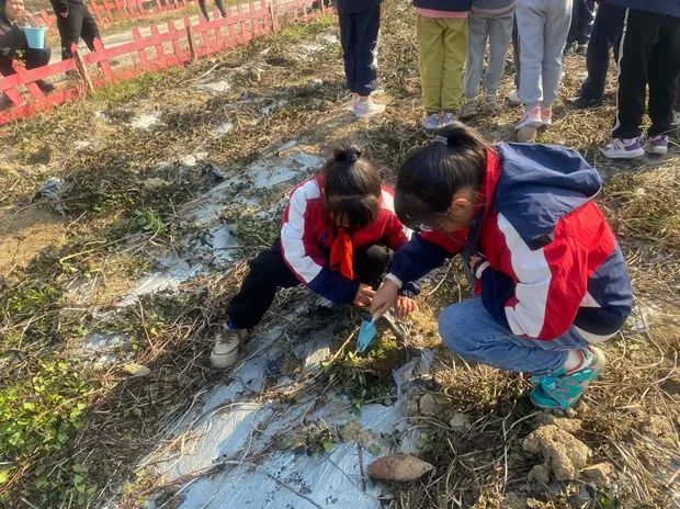 来到红薯种植园,队员们迫不及待拿出工具体验挖红薯。小红薯孕育大能量,一个个红润硕大的红薯,映红了队员们的笑脸,分享着劳动带来的快乐。