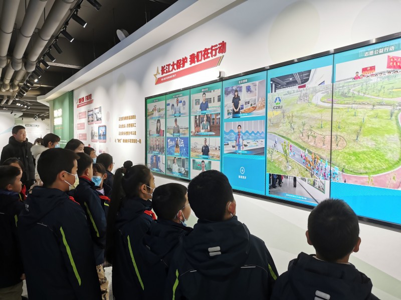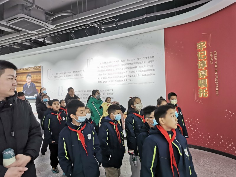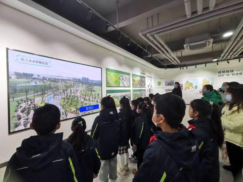 知江岸蝶变 长江大保护展示馆由原江苏常隆化工有限公司办公用房改建而成,讲述着长江常州段的生态蝶变。在讲解员的带领下,队员们和家长一起走进长江大保护展示馆,认真聆听讲解,逐步了解了常州在习近平总书记的谆谆嘱托下稳步实现“腾笼换绿”和高质量发展目标的主要做法和成效。