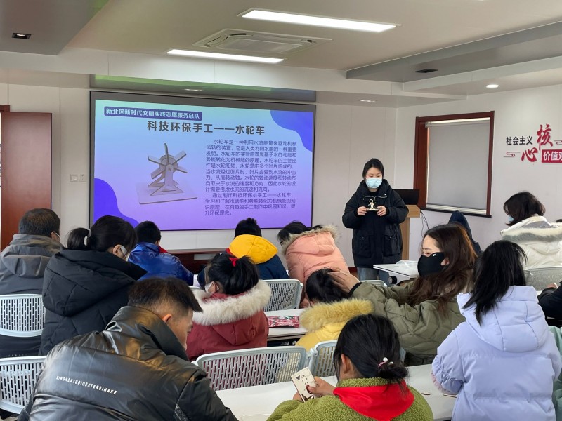 随后,在专设的活动室里,队员们通过多媒体教学方式接触到水资源循环、废物再利用以及新能源等方面的科普知识。 在制作科技环保小手工——水轮车过程中, 队员们掌握了如何将水动能和势能转化为机械能的原理,并在有趣且充满挑战性的手工制作中巩固所学知识。
