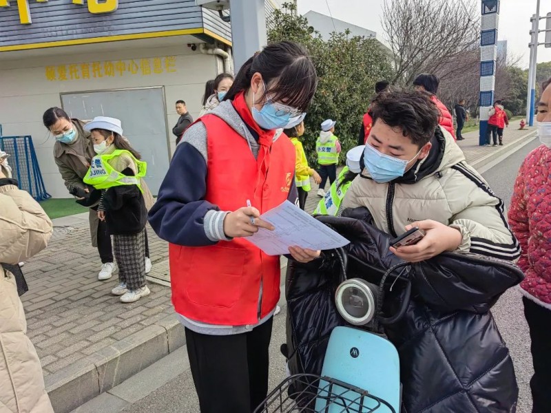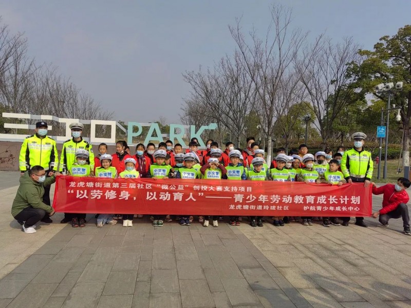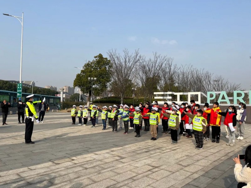 为了让龙虎塘辖区内居民能够更多了解一盔一带交通安全的重要性,让队员们从小树立遵守交通法规意识,以小手牵大手的形式进行交通安全宣传,体验交警工作,并将校园内学到的学科知识运用在活动当中。龙虎塘实验小学与新北交警大队龙虎塘中队、龙虎塘街道玲珑社区护航青少年成长中心两大校外实践基地携手,于2023年12月23日上午联合举办了“一盔一带心头记,学科知识巧运用”为主题的交通安全宣传玩伴团活动。