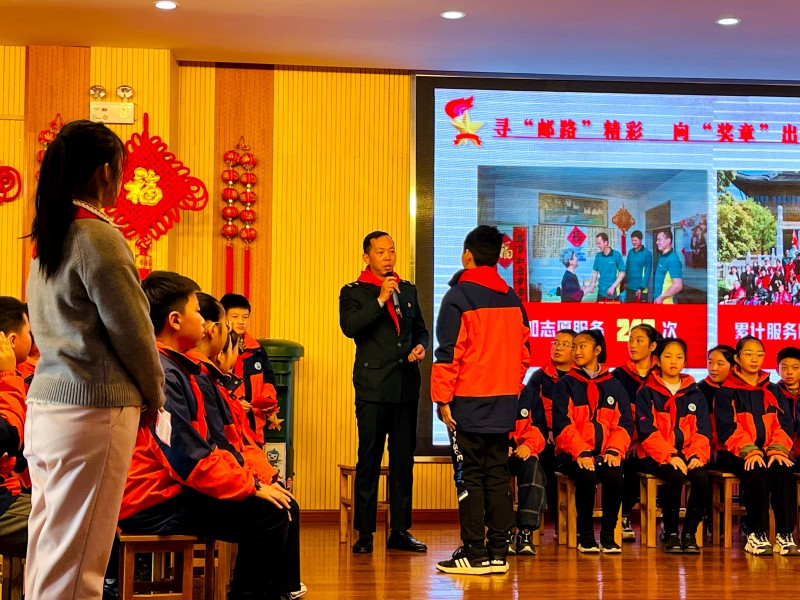 寻“路”之精彩 飞龙实验小学辅导员王钰老师带领五(1)中队的队员们,走进邮政工作人员朱新财,了解人物故事。活动聚焦朱新财与三枚奖章,通过挖掘奖章背后蕴藏的精神内涵,激励队员们在学习和生活中勇争爱心章、责任章和创新章,让队员深切体会到小岗位也能做出大贡献。 吕墅小学的辅导员黄晓露老师和四(4)中队的队员们带来了《一“路“绽放” 一“路”高歌》主题队课。黄老师带领队员们探索了学校门前的发展之路、家乡的便捷之路、常州的幸福之路、中国的富强之路和未来的畅想之路,在层层递进中让少先队员感受到中国道路交通发展的无限魅力,并鼓励队员们努力成为中华民族伟大复兴之路的先锋力量。