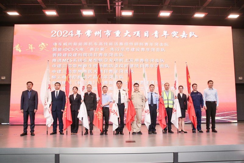 团省委副书记李晓明、市政府副市长夏思军为冲锋在前、攻坚克难的青年突击队和为重大项目创优奉献、保驾护航的青年文明号代表授旗。