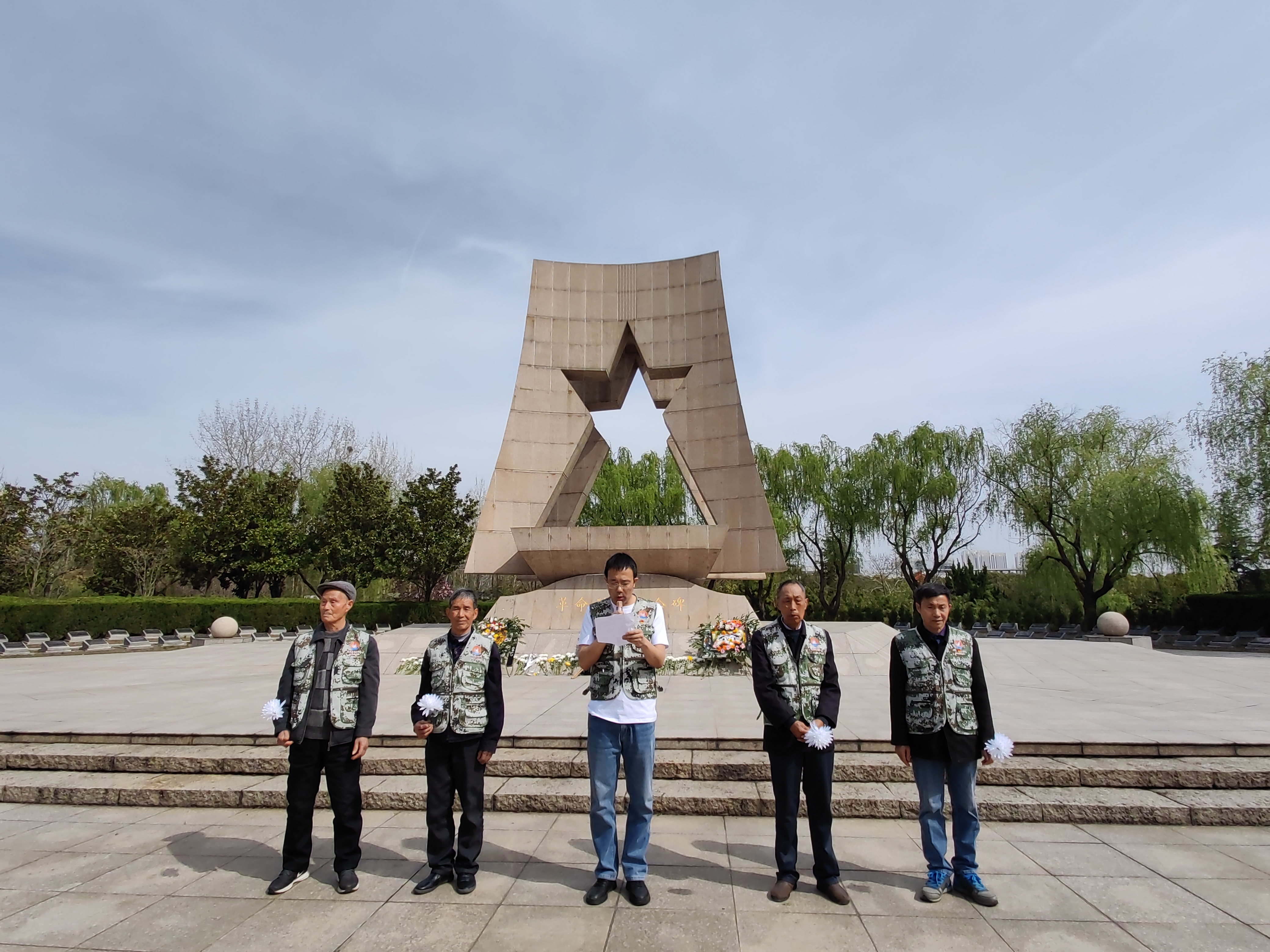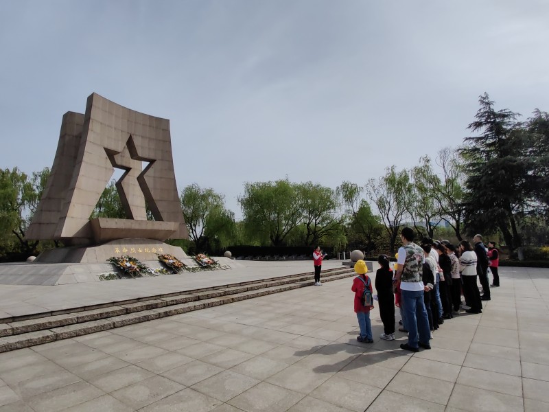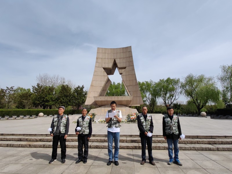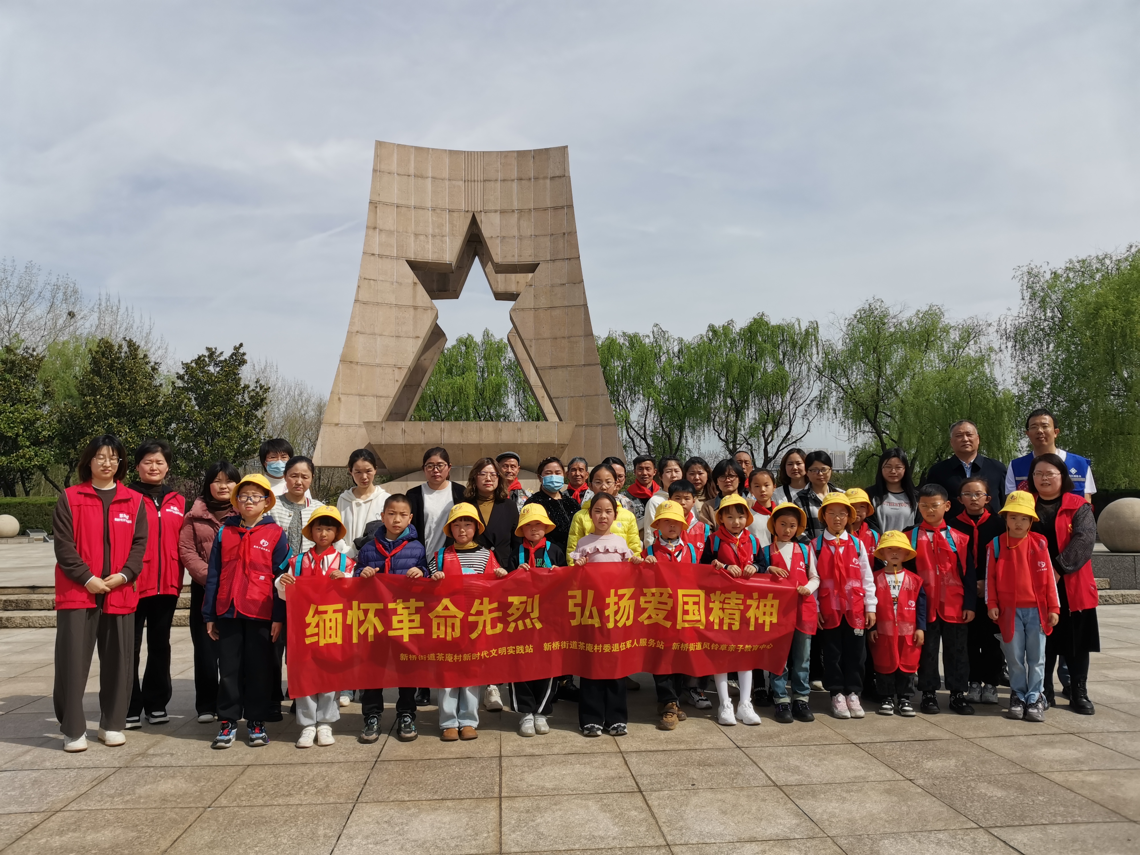 风儿声声,松涛阵阵,又是一年清明时。为追思英烈、弘扬爱国精神,4月1日,新桥街道茶庵村新时代文明实践站携手新桥风铃草亲子教育中心,在新北区革命烈士纪念碑前开展了“缅怀革命先烈 弘扬爱国精神”清明祭扫活动。辖区内党员、退役军人、群众代表近30人参加。 上午9点30,参加祭扫的人员秩序井然地来到纪念碑前,由风铃草社工刘婷婷宣布祭扫活动开始。大家沉痛悼念在战争岁月里为中华民族伟大复兴而赴汤蹈火、舍生取义,立下不朽功勋的革命先烈们,向长眠在这里的,为新北解放事业献出宝贵生命的烈士们默哀三分钟。