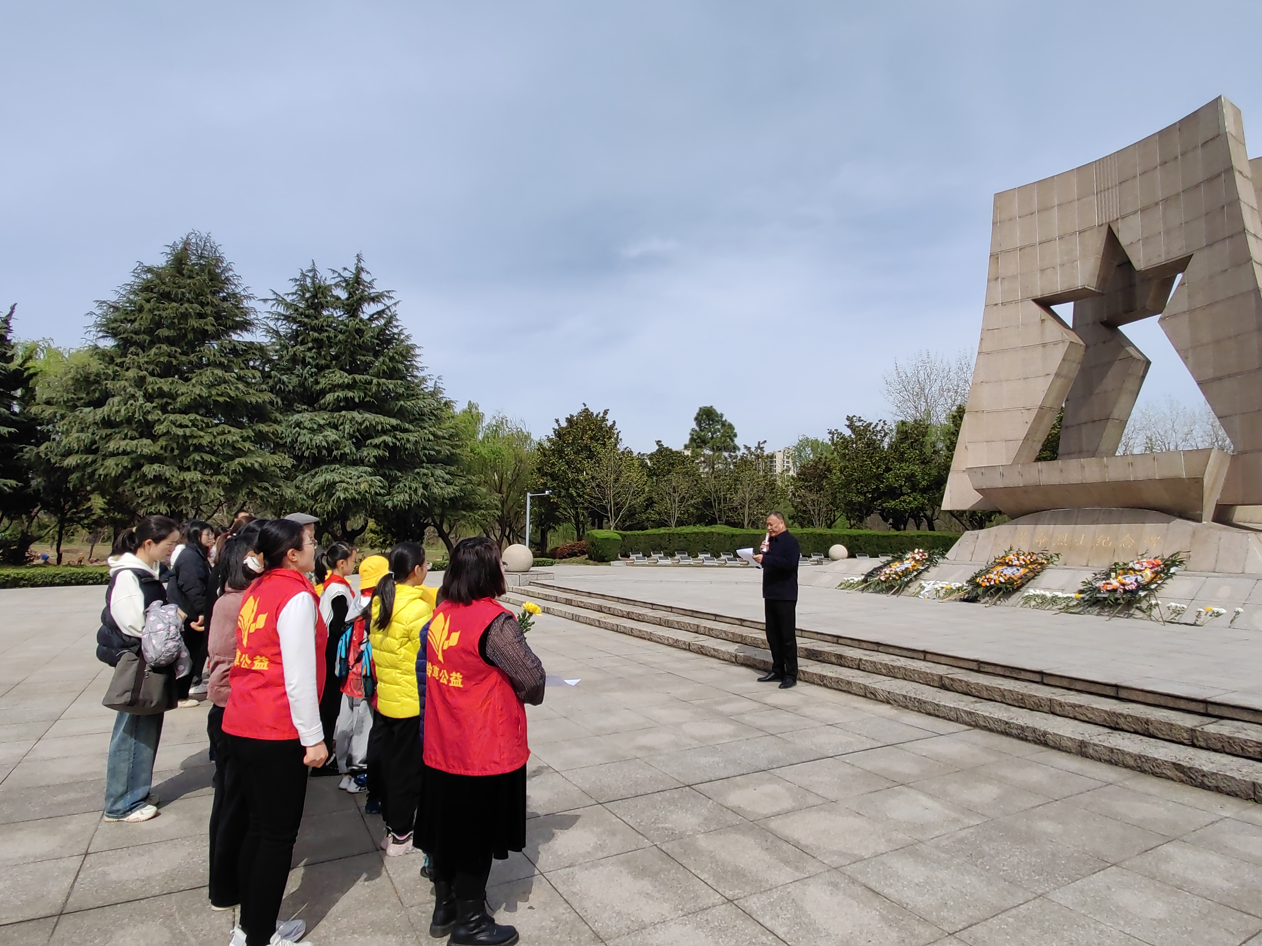 接着,由风铃草负责人奚春娣为大家介绍纪念碑的建造历史,由少先队员代表岁晨烨进行革命烈士事迹宣讲。新北区革命烈士纪念碑建于2006年10月1日,是近现代重要史迹及代表性建筑的烈士墓及纪念设施,这里有潘墅战役烈士教导员瞿钦民等40人集体烈士碑,另有三井移来的吉国荣、周炳章等烈士纪念碑。随后,全体人员排着整齐的队伍瞻仰纪念碑并送上小白花,当看到墓碑上刻着英雄的出生和去世年月,他们大多数都是二三十岁的青年,有的甚至才十几岁,孩子们都被烈士们视死如归的大无畏精神所深深打动!