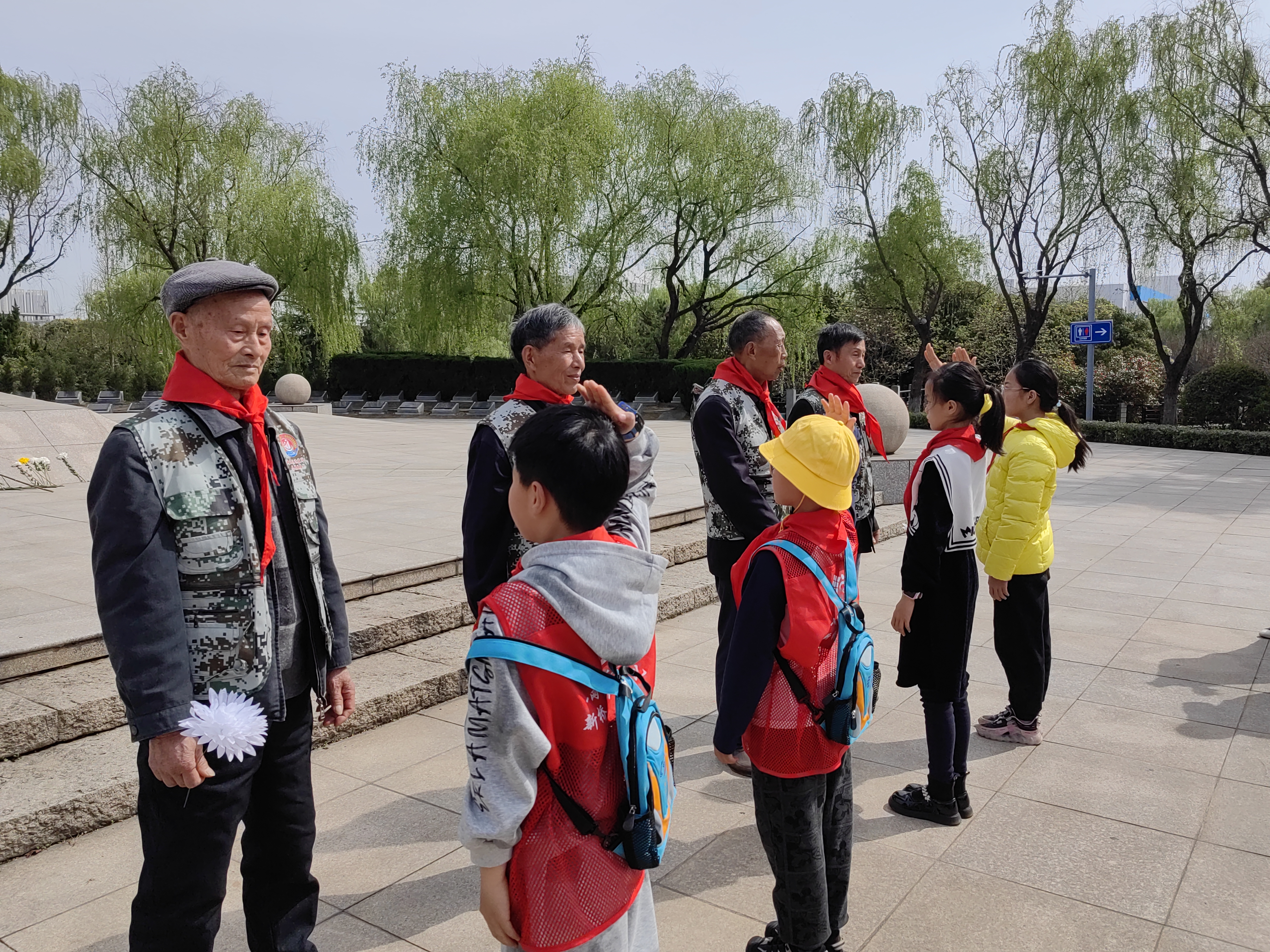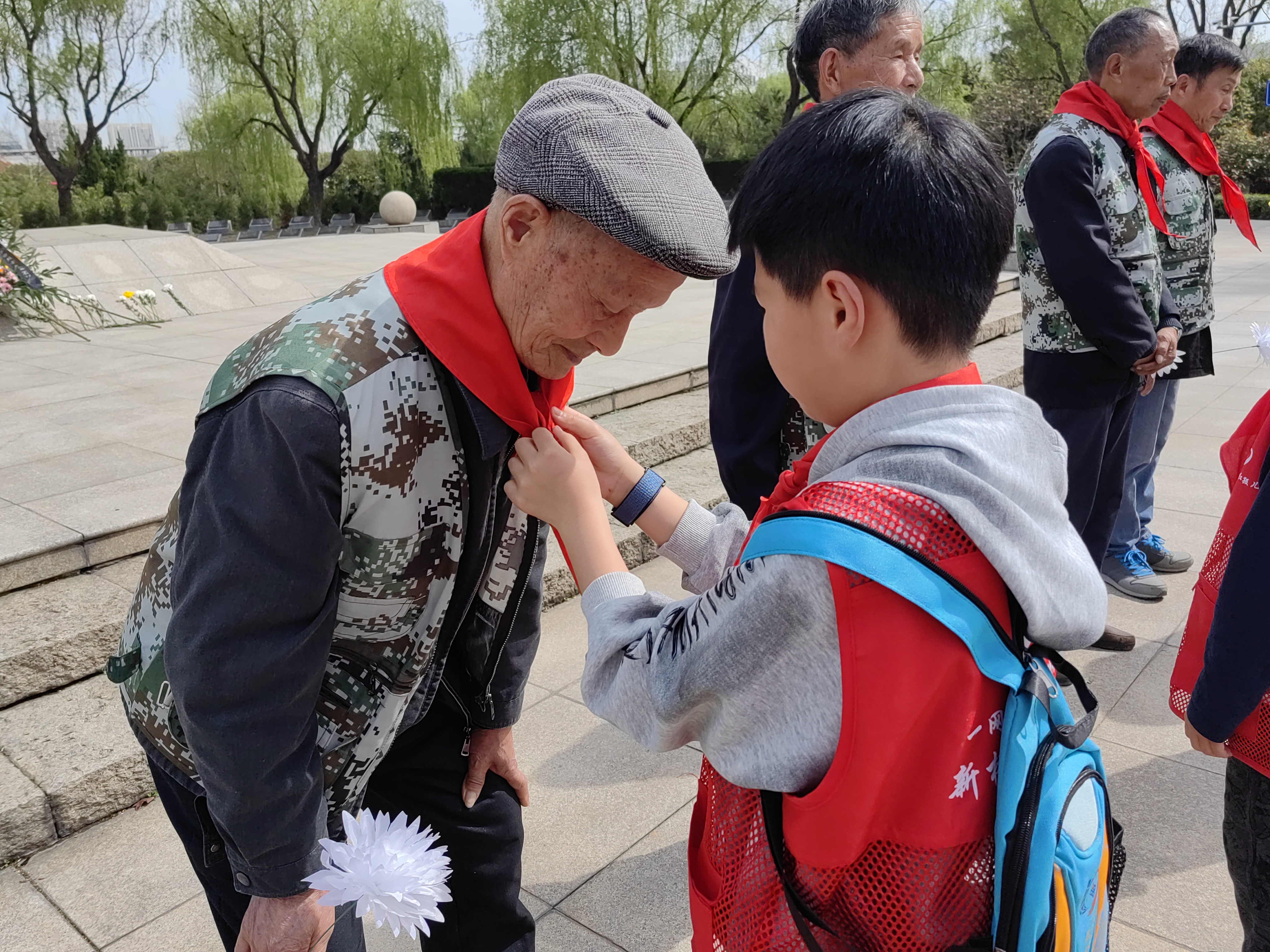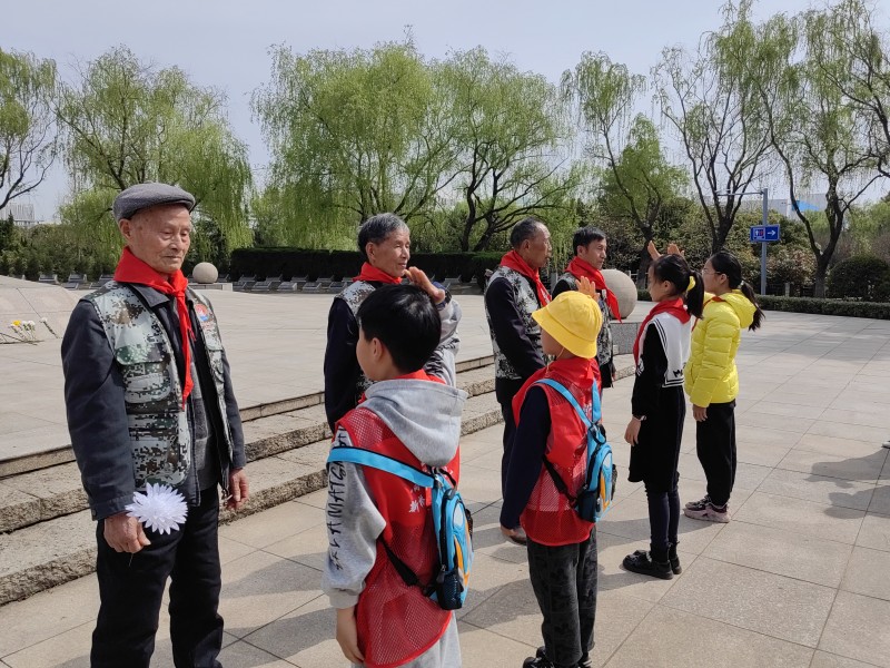 然后由茶庵村退役军人服务中心负责人吴伟青介绍辖区内退役老兵的优秀事迹。他们在退役后依然保持着军队的优良作风,不仅在工作中兢兢业业,还热心社会公益,无论是抗击疫情,还是在社区安全、环保卫生等村委事务中,他们都冲在最前线,任劳任怨,不怕劳累,坚持做群众的好榜样。在现场,由少先队员代表为高林大等四位老兵佩戴红领巾,已过古稀之年的老兵们,看着胸前的红领巾和孩子们稚嫩的脸庞,眼含热泪,仿佛重回曾经热血澎湃,奉献青春的军旅生涯。