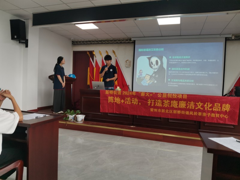 为扩大禁毒防艾宣传教育的覆盖面和影响力,不断提高辖区群众参与禁毒防艾斗争的意识,6月23日上午,在第37个国际禁毒日来临之际,新桥街道茶庵村委携手常州工学院和新桥风铃草亲子教育中心,开展“禁毒防艾进社区 守护平安促成长”活动,以讲座、发放宣传册、创作手抄报等多种活动形式来筑牢人民群众的禁毒“防火墙”。 当天,有30多位村民和青少年参加了活动。活动开始前,志愿者让大家填写了调查问卷,了解大家对禁毒防艾知识和政策的了解程度。接着,来自常工院的大学生志愿者韩子杰用通俗易懂的语言和情景再现的形式,给大家细致讲解了毒品的基本知识与危害、禁毒法律法规和预防毒品的方法,剖析新型毒品的常识,教会青少年如何在日常生活中分辨各类伪装的新型毒品,并结合大量的图片和真实案例,重点帮助青少年儿童认识和了解以“笑气”、“伪装奶茶粉”、“跳跳糖”等一批伪装性高、迷惑性强的新型合成毒品,进一步宣传毒品的危害,提高孩子们拒毒防毒的能力和意识。