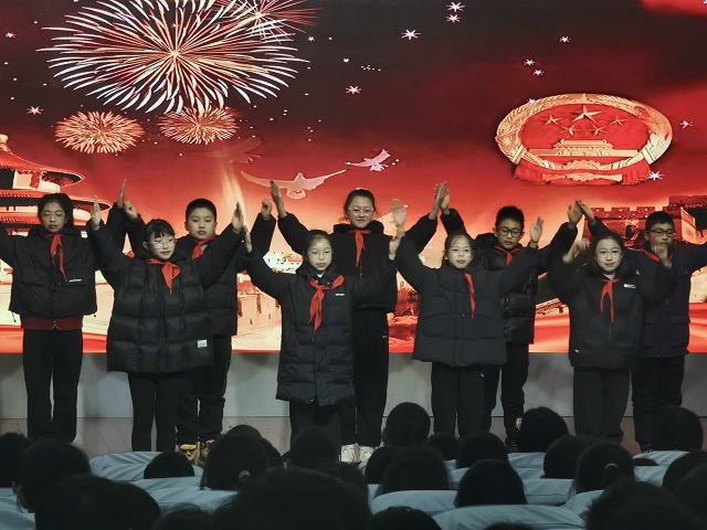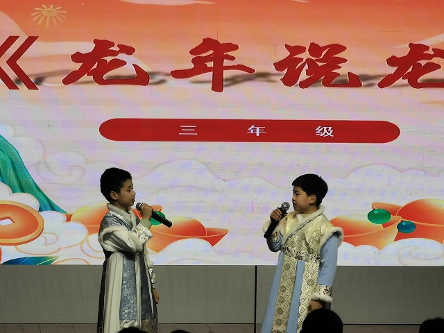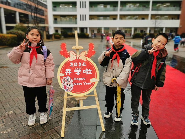 带着对寒假生活的美好回忆和对崭新未来的无限希望,2月21日下午,春江中心小学“‘龙’光焕发新学期,笋娃逐梦向未来”开学典礼活动在二年级队员们活泼欢快的舞蹈中拉开帷幕。 第一篇章 “龙”光焕发,开学啦! 奏国歌,升国旗,少先队员行队礼!队员们心怀激动和憧憬齐唱国歌,冉冉升起的五星红旗承载着大家对新学期的无限希望。 一年级的小朋友们舞动了一曲《开学歌》,每一句歌词都饱含着对新学期的期待与希望,如同清晨的阳光,温暖着我们的心灵。 第二篇章 龙腾虎跃,展示啦! 时光滴答,这细碎的声响,打在匆匆的步履上,翻山越岭,转眼又是一春。随着甲辰年的到来,人们似乎对龙年有着特别的青睐和更多美好的期许。这不,三年级队员们正津津有味地研究龙文化呢!他们带来的相声表演《龙年说龙》让我们在欢声笑语中,对龙文化有了更进一步的了解。 除了龙文化,中华民族的年俗文化也是博大精深呢!瞧,六年级队员带来的快板表演《满满的年味儿》,仿佛又把我们带回了那热闹非凡的春节,那一盏盏红红的灯笼,一副副吉祥如意的对联,还有各种各样的年货,处处洋溢着年味儿的喜庆!在这喜庆的日子里,五年级队员们也积攒了满满的祝福汇成了一段绕口吉祥话说给我们听。 生龙活虎展风采,乘风破浪新起航!瞧,春小队员们在寒假里可不闲着,他们始终以发展、成长为先,四年级队员们就以一首朗诵《启航》来激励我们重拾梦想,扬帆起航,踏上新的征程! 第三篇章 鱼跃龙门,成长啦! 岁月峥嵘须拼搏,年华潇洒莫蹉跎。这个假期,队员们研究民俗、寻访红色基地、参与家务劳动,收获特别多。笋娃娃电视台的小记者们在报到当天随机采访了不同年级的队员,他们从寒假生活的方方面面畅谈了自己在假期中的所见、所闻、所思、所悟并纷纷送出了自己对小伙伴们的新春祝福。 最后姚灵娣校长为所有队员送来了新年祝福,并与大家达成了新的约定。她希望队员们在新的学期里好好吃饭、好好睡觉、好好运动、好好学习。千里之行,始于足下。新学期的画卷已随着朝阳徐徐展开,相信春小队员们定能从现在开始,以崭新的面貌迎接挑战。 少年不惧岁月长,彼方尚有荣光在。新年新征程,愿春小的每一位队员都能以梦为马,勇敢奔赴,虎跃龙腾新一年!生龙活虎好运䨻䨻,衣食丰足财富䲜䲜!