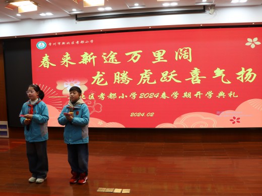 岁且更始,时乃日新。2024年2月21日下午,学校全体师生以“春来新途万里阔 龙腾虎跃喜气扬”为主题举行开学典礼,共同翻开新学期的新篇章。 第一篇章缤纷寒假乐融融 队员们的缤纷寒假视频带领孝小学子回顾了精彩纷呈的寒假生活。一个个祝福、一张张贺卡、一幕幕关心、一次次寻访,让孝都小学的队员们充分体会到了中华传统节日的魅力,品味到了独特的年味。 第二篇章优秀寒假作业颁奖 假期中,队员们在找寻年味的同时积极探索,大胆创新,充分展示了自己的风采。学校为在寒假作业和活动中表现优异的同学颁奖,激励所有队员用辛勤的劳动播种下希望的种子,收获满意的果实。获奖的队员发表获奖感言,向全体师生送出真挚的祝福。 第三篇章新学期校长寄语 徐文娟校长用龙马精神、龙腾虎跃、鱼跃龙门三个成语的内涵表达了对全体队员新学期的期望。她希望队员们拥有龙马精神,朝着目标奋发向前,实现自己的梦想;她希望队员们龙腾虎跃,不断创新,积极向上;她希望队员们鱼跃龙门,认真学习,勇往直前,迎接挑战,超越自我。 第四篇章欢乐开学季活动预告 学校少先队大队辅导员周珠艳老师向全体队员介绍了学校开学课程游园活动的计划和规则,期望队员们在游园活动中积极争“章”,成为明自理、乐孝行、有担当的孝德少年。 新学期,新起点,新征程,新的学期孕育着新的希望、新的挑战,承载新的梦想。孝都小学的全体师生定会在新征程上凝心聚力,创造新的辉煌。
