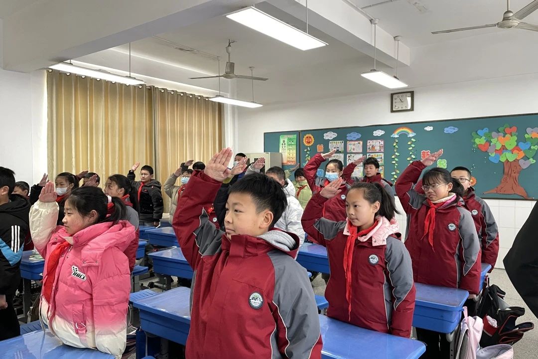 优秀教师代表殷蓉艳老师在新学期给大家提出新的期望:愿队员们保持热爱,争上春山,以积极的态度和行动迎接新学期的到来,愿队员们在知识的海洋中畅游,在友谊的阳光下茁壮成长,书写属于自己的精彩故事。 谆谆教诲启心智,殷殷寄语催奋进。许华章校长吟诵了一首杜甫的《春夜喜雨》,语调时而铿锵,时而绵长,每个音节都在表达新学期再见队员们的喜悦之情。许校鼓励魏小学子作为“龙的传人”,要有智慧和勇气,要有强健的身心。希望魏小学子在新学期用勤朴、智慧、勇毅的优秀品质去克服困难、迎接挑战,为祖国、家庭而努力奋斗,成就自我、成就未来。