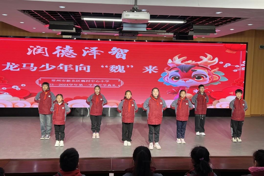 玉兔去一元复始,金龙来万象更新。2月26日上午,魏村中心小学在室内举行了以“润德泽智 龙马少年向‘魏’来”为主题的2023—2024学年第二学期开学典礼。全体师生共迎新起点,携手新征程。