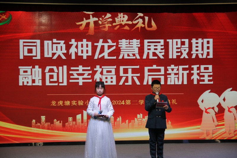 笑语欢歌共庆祝,龙小同庆万象新。寒假,带着春节的喜庆一晃而过,踏着春天的脚步,龙小人又回到了美丽的校园。2月26日上午8点,在学校报告厅,举行了“同唤神龙慧展假期 融创幸福乐启新程 ”新学期开学典礼。全体师生和家委会代表共同参加了此次典礼。