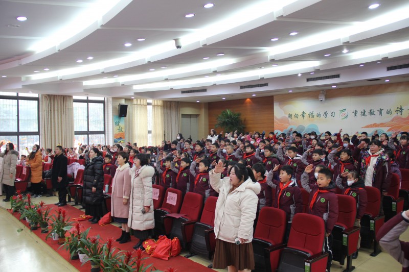 伴随着出旗音乐的响起,全体师生以肃立的姿态、灿烂的笑脸迎接新学期的开始。桃花要趁东风开,幸福要靠奋斗来。龙娃虎妞们在分享“龙娃同唤六神龙 阖家共度生态年”的寒假幸福作业中,聚焦“低碳生活”,探究“年文化”,领跑“学习型家庭”,乐享“跨学科主题学习”带来的主动探究与实践的快乐,并汲取正能量,为后续发展提供无限可能。一年级到六年级的代表们,分别聚焦“运动”、“共长”、“积累”、“学习”、“慧研学”几个关键词绘声绘色地进行了分享,赢得台下掌声阵阵。