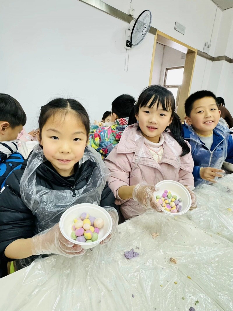 【元宵甜甜 幸福绵绵】 “汤圆热,花灯俏,又是一年元宵到。”当元宵节遇上中国龙,一年级的小朋友们用红包、礼盒等春节物料,巧手制作起了一盏盏别具匠心的灯笼,将教室装点得艳丽多彩,孩子们对环保的追求,为校园增添了独特的节日氛围。再看,小朋友们化身为小厨师,和家长、老师们一起擀面、包馅、煮汤圆、品汤圆。在动手实践中,小朋友们更加懂得了中国传统节日的魅力。