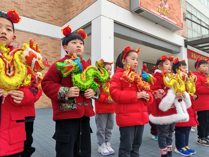 我爱中国节! ——三井实验小学一年级入队课程系列之“爱国情” 颗颗童心,满载希望 星星火炬,指引方向 队旗飘扬,队歌嘹亮 红色信仰,奋勇追光 少年儿童是祖国的未来,民族的希望。少先队的蓬勃事业,是党的事业始终保持朝气与活力的重要源泉。为深入贯彻落实《中共中央关于全面加强新时代少先队工作的意见》,规范少先队组织文化建设,加强对少先队员的组织教育,扣好人生的第一粒扣子,三井实验小学序列化地开展一年级入队课程,二月,孩子们一起感受中国年,爱上中国节。 【祥龙启新 志向未来】 龙腾盛世,喜迎春来。当春光把蕴藏了一冬的热情活泼泼、鲜亮亮地释放出来时,沉寂了一个假期的校园也因为有了童声笑语,而变得鲜活又明快。一年级的小朋友身穿大红袄,提上喜庆的灯笼,带上代表家乡的手工作品……回校啦!瞧,他们舞长龙,画福龙,有序参加打卡“集龙”活动,争做健康有福、幸运智慧的最美求原娃。