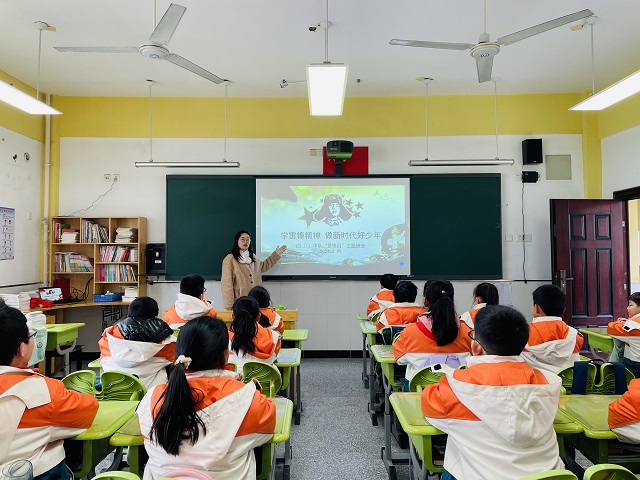 “人的生命是有限的,可是,为人民服务是无限的,我要把有限的生命,投入到无限的为人民服务之中去。” —— 摘自《雷锋日记》 暖春至,万物生。在这乍暖还寒的初春时节,即将迎来第61个“学雷锋日”。为贯彻落实习近平总书记关于弘扬雷锋精神的重要论述和指示要求,引导新时代少先队员以雷锋为榜样,传承和发扬雷锋精神,3月1日,春江中心小学四(1)中队全体队员在辅导员王佳伟老师的带领下,展开了一场追“锋”行动! 行动一:一节“走近雷锋”主题队会 雷锋精神,薪火相传。四(1)中队的队员们,通过一节主题队会,了解雷锋生平事迹,学习雷锋精神,唱响时代旋律,共同感悟“雷锋”带给我们的深远意义与存在价值。学习雷锋,走近雷锋,让榜样的力量引领我们继续前行!
