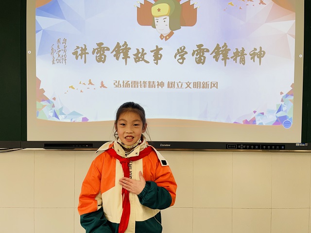 行动二:一个“雷锋故事”分享会 雷锋故事,感动你我他。队员们主动申请,自主策划,开展了雷锋故事分享会。《三次递交申请书》、《一个“永”字值千金》、《赠给“父亲”的照片》……一个个感动人心的雷锋故事,在队员们深情的讲述中,更添一份传承与发扬雷锋精神的重要性。