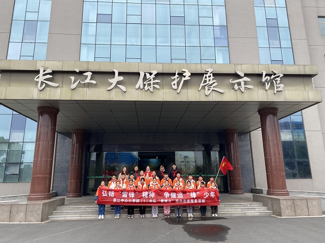 行动三:一次“长江展馆”寻访行 家住长江边,共饮长江水。春江中心小学地处长江之滨,队员们决定在“雷锋日”到来之际,为母亲河进行一次志愿服务活动,共同加入长江大保护的行列中来。于是,在校外辅导员冯叔叔的引荐下,与录安洲社区的叔叔阿姨们一起,走进“长江大保护展示馆”,见证了长江沿带的“前世”与“今生”,感受到了党对长江生态环境保护的重大决心。看来,长江大保护,每个少先队员都义不容辞!
