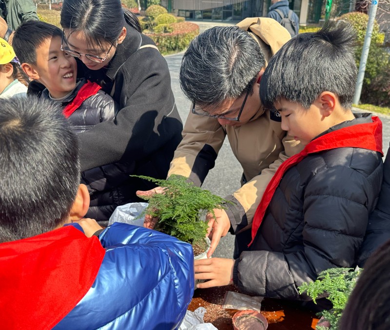三、手植绿植体验乐趣 队员们在工作人员的指导讲解下,亲手体验了文竹盆栽种植,感受劳动的乐趣。大家选择喜欢的花盆,将漂亮的文竹小心翼翼地移植到营养土中,再搭配上漂亮的装饰和憨态可掬的玩具小马,就组成了形态各异的文竹盆栽。一土一铲,栽下的不仅仅是一个小盆栽,更是亲手种下了生活的美好,种下了对生活的期望。