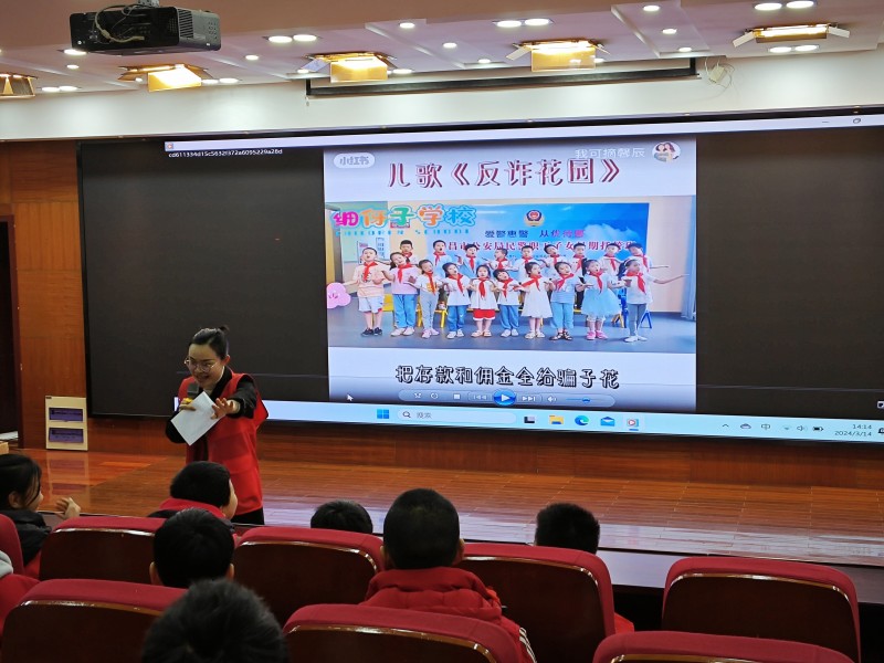 在315国际消费者权益日来临之际,为树立队员合理健康的消费观,警示典型骗局,提升辨别消费陷阱能力,2024年3月14日下午,常州市新北区孝都小学联合魏村街道政法综治局、魏村派出所、闸北村新时代文明实践站,共同开展了“3•15”反诈骗宣传活动。 “在小小的手机里面刷呀刷呀刷,领小小的红包你乐开了花……”伴着悦耳的旋律,队员们跟随街道工作人员一起学习了这首《反诈花园》手势舞。这样寓教于乐的形式,让队员们记忆深刻,把反诈意识时刻刻在心里。