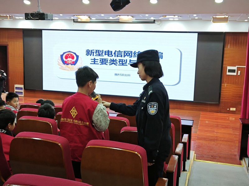 魏村派出所民警带来了一节生动的反诈宣传课。陈警官通过全方位揭露诈骗犯罪分子常用的诈骗手法、方式,加深队员们对于电信网络诈骗隐蔽性、危害性、手法多样性的认识,提高队员们识诈、防诈、反诈的思想认识。为加强队员们对消费陷阱的识别能力,提高防范意识,队员们还参与了关于消费者权益知识竞答活动。活动中,队员们积极参与,踊跃发言。