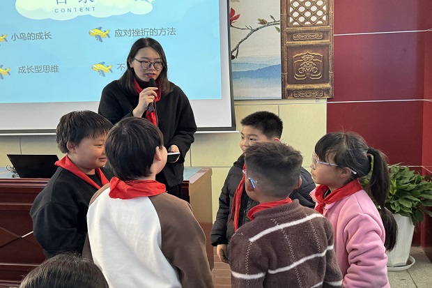 为进一步落实2024年常州市学校生命教育月活动的通知精神,增强学校心理健康教育的针对性,提高少先队员应对生活中各种逆境和压力的能力,培养青少年的积极心态和健全人格,3月15日下午,学校邀请常州市心理咨询师协会施瑶讲师,为四年级少先队员带来了一场“我是不倒翁”的抗逆力讲座活动。 活动中,施讲师由“小鸟的成长”引出“挫折”这一话题,围绕“青少年会遇到什么挫折?”“正确应对挫折的方法”“成长型思维”三个方面进行讲解,引导队员们挖掘自身的内在优势和外界资源,提高抗逆力,走出困境,保持正面思考和增强克服障碍的行动力。 “不倒翁小剧场”的互动环节,施讲师创设了5个不同的情景,队员们纷纷举手,探讨想法、做法并上台生动演绎场景,把活动推向了高潮。 此次抗逆力提升心理教育讲座的开展,让队员们深刻理解到抗逆力的重要性,掌握应对挫折的方式方法,树立正确的人生观和价值观,促进学生健康快乐成长。