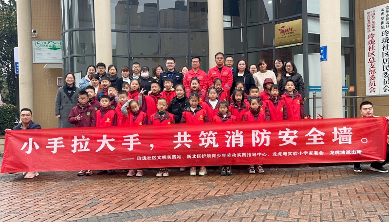 为了增强全民的用电、用火安全意识,进一步提升消防安全教育的效果,2024年3月17日上午,龙虎塘实验小学、新北区护航青少年劳动实践指导中心、龙虎塘派出所、常州安能应急救援中心多方联动,开展了以家校社共育“小手拉大手,共筑消防安全墙”为主题的消防安全社会实践活动。 龙虎塘实验小学一年级、三年级24组家庭在玲珑社区党群服务中心集合。活动开始,派出所宣讲消防安全知识的叔叔、安能应急救援中心的教练们给少先队员们讲解火灾的危害性,碰到火灾人们应该如何自救及逃生方法。通过教练们的宣传讲解,学生们了解了如何使用灭火器,学习了不少实用知识,还掌握了一些火场自救逃生的小技能。 活动中,龙虎塘实验小学气候变化教育课题组付蓉老师也来到活动现场,结合科学知识为队员们讲述了发生火灾产生的气体对环境、对气候变化的影响。队员们还在宣导员们的带领下进行了灭火器的实际操作,演练灭火过程。 活动最后,少先队员们分成三组在宣导员的带领下走入社区对沿街商户和居民进行宣传消防安全知识。小手拉大手,让社区居民提升了消防安全意识。通过安全宣传,也让大家都明白了火灾防大于灭的道理。