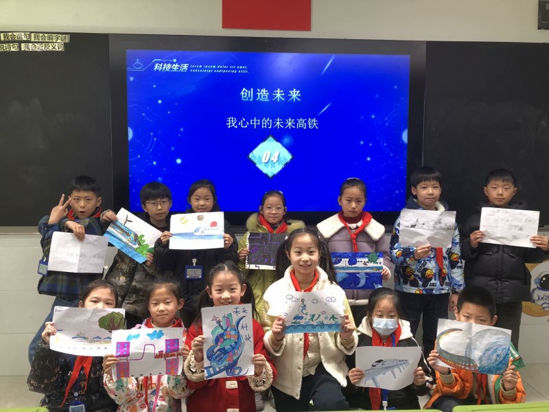 未来的轨道交通会是怎样的呢?经过激烈的讨论,队员们一致认为“绿色”与“智能”是创造的主题,于是大家将创想落于指尖。在《我心中的未来高铁》班队活动中,队员们展示了创意画、纸模、黏土作品,这些充满了科技感作品的诠释着队员心目中未来高铁,表达大家对轨道交通产业壮阔未来的美好期待。