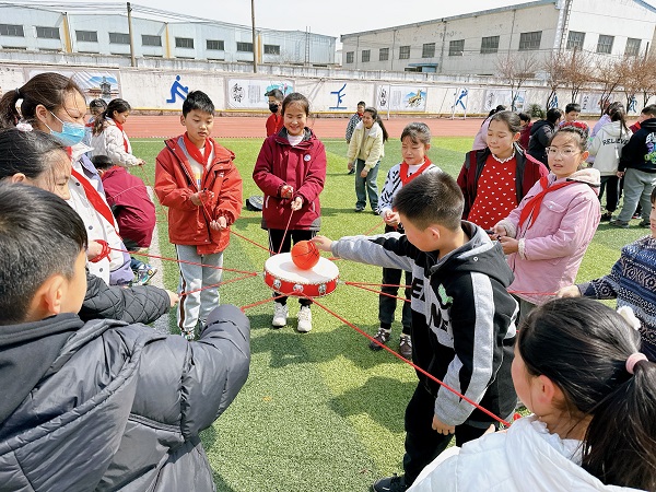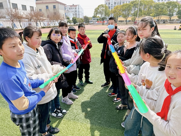 在追求个人成长和发展的道路上,逆境与挫折是不可避免的。为了帮助队员构建积极的生活态度,面对困难时能够保持乐观,提升解决问题的能力,3月22日,新北区汤庄桥小学组织了以“抗逆力”为主题的团体辅导活动——“逆风飞翔 向阳而生”。 活动在学校操场举行,历时约45分钟。队员们分小组参与了珠行万里、纵横天下轨道传递、同心鼓击鼓颠球、不倒森林等游戏。活动初期许多队员面对挑战时感到困惑甚至想要放弃,但在相互帮助、鼓励和辅导员老师的协调下,大家逐渐掌握了每项活动的技巧。 本次团辅活动由心理辅导员老师张艺雯精心设计,旨在游戏中引导队员如何从辨证的角度看待生活中的消极体验和积极作用,学会调整面对困难时的负面情绪,并尝试用积极的方式应对。 “逆风飞翔 向阳而生”心理团辅活动成功地为队员们提供了一个学习和实践抗逆力的平台,使他们在面对生活的风雨时能够更加从容不迫,向阳而生。我们相信,通过这样的活动,可以为青少年的健康成长培养出更多的内在力量。 撰稿:张艺雯 摄影:张艺雯 审核:卢丽燕