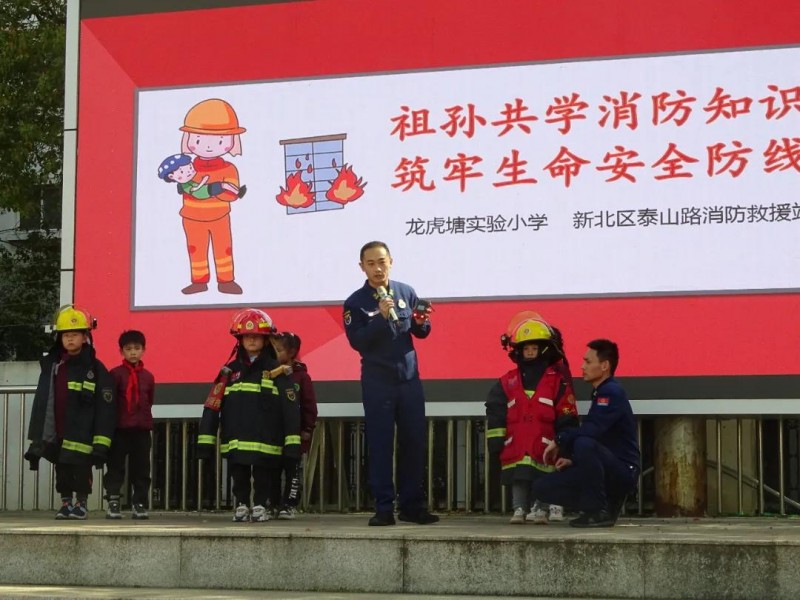 为了提高家里一老一小的安全意识,帮助大家掌握必要的消防安全知识和技能,守护每个家庭的健康和幸福。3月29日下午,龙虎塘实验小学大队部携手新北区泰山路消防站共同举办了“祖孙共学消防知识,筑牢生命安全防线”的安全教育活动。 消防人员通过播放安全视频、讲解实际案例、普及消防知识、互动体验问答等多种形式向祖孙们宣讲了火灾的危险性。并就预防火灾、正确报警方式及如何逃生自救进行了详细的讲解,提高了在场人员的消防安全理念。 消防人员就发生火灾该如何报警及遇到火灾正确的应急处理方法两个方面给大家作了详细的讲述。在场的师生祖辈们聚精会神的聆听,在学到知识的同时也激发了队员们的赤焰爱国梦!在体验后队员们也提出了自己心中的小小疑问,消防人员对他们的问题作了专业性的解答,在一问一答的互动中不仅增加了少先队员们的安全知识,也萌发了对消防人员的崇敬和钦佩之情! 活动接近尾声,队员们带着爷爷奶奶们来到消防车面前,和消防人员近距离的互动体验,学习安全知识,并和心目中的消防英雄合影留念。 通过此次消防学习,让安全意识薄弱的祖孙们意识到火灾的危害和严重性;更加明白了火灾预防的必要性;学会了应对火灾来临时的逃生技巧;也深刻领悟到消防安全知识的重要性,呼吁身边的人一起关注消防安全,共同建设平安美好家园! 撰稿|孙萌萌 摄影|孙萌萌 审核|丁小明