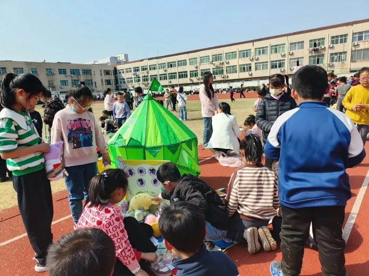 02.休闲娱乐 每个中队人气最高的莫过于休闲娱乐区了。队员们创意无限,砸金蛋、盲盒抽奖,考验顾客的知识储备和反应力,连老师们忍不住来挑战呢!还有各式各样的套圈游戏前也是围满了小顾客,射击(水枪)、摸盲袋、扔沙包、摸奖、投壶、弹球等游戏更是吸引着队员们频频驻足参与。